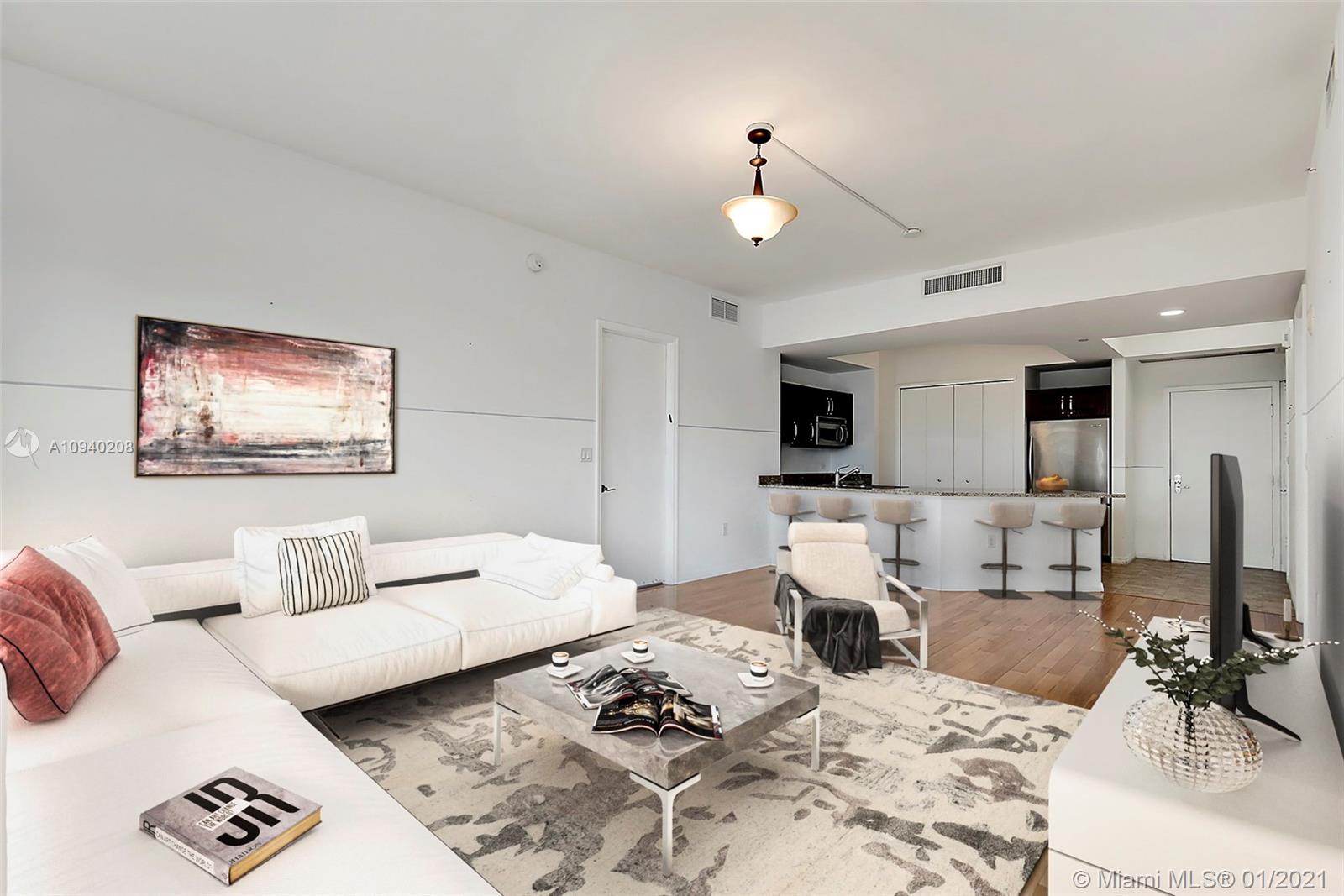 Best deal in the highly coveted Turnberry Village!! Absolutely stunning TOP FLOOR 2-bed, 2-bath unit. Enjoy incredible city and water views from your private balcony perched high on the 14th floor. Plenty of natural light throughout with an open concept living room and kitchen. Fantastic high amenity/full-service building for true resort style living. Unbeatable location close to shopping, dining, entertainment, and the beach. This is a must see. Schedule a showing today! Virtually staged.