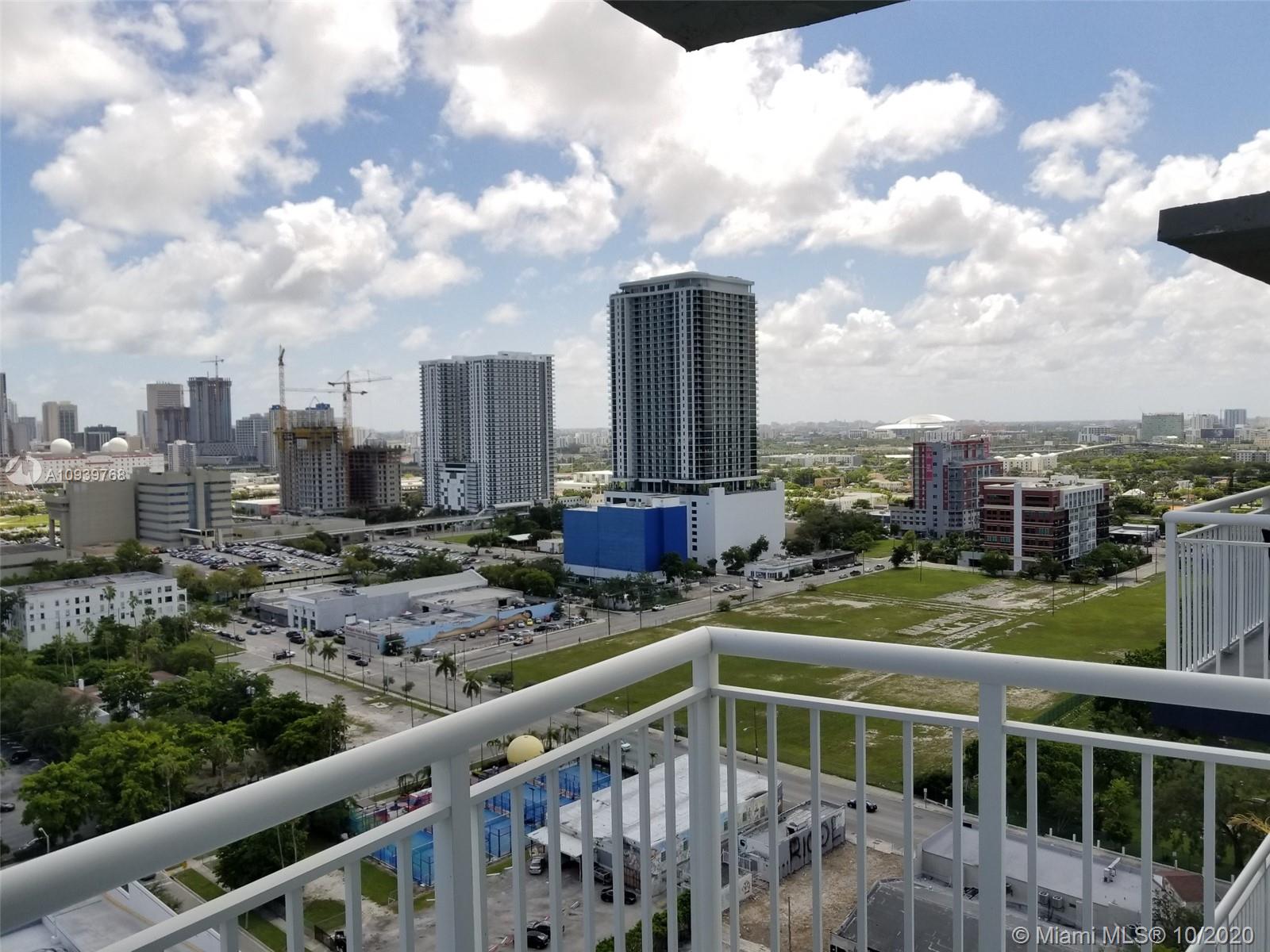 1/1 Pent House with amazing views! Unit with 1 full spacious bath and 1 bedroom with an L shaped big living room/dining area with balcony and open concept kitchen. Kitchen with granite counter and washer & dryer in unit. Unit has 1 covered parking space and is centrally located to Downtown, Wynwood, Design District, and easy access to I-95.Rent right away, corporate buyers Ok.