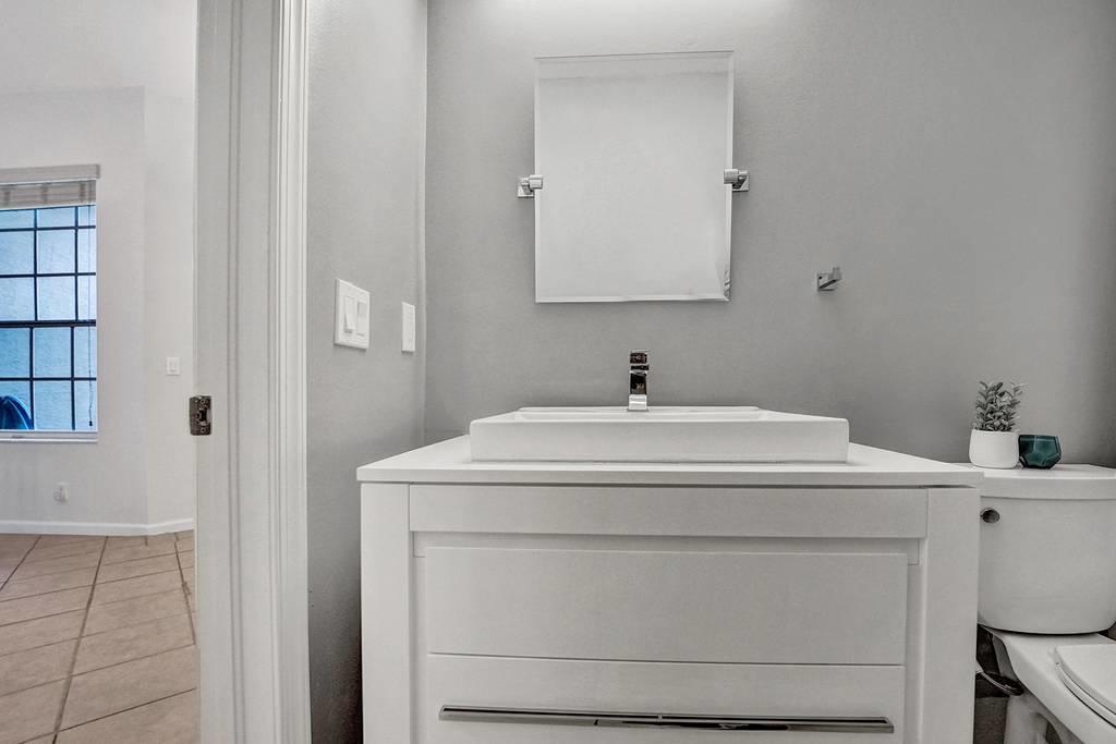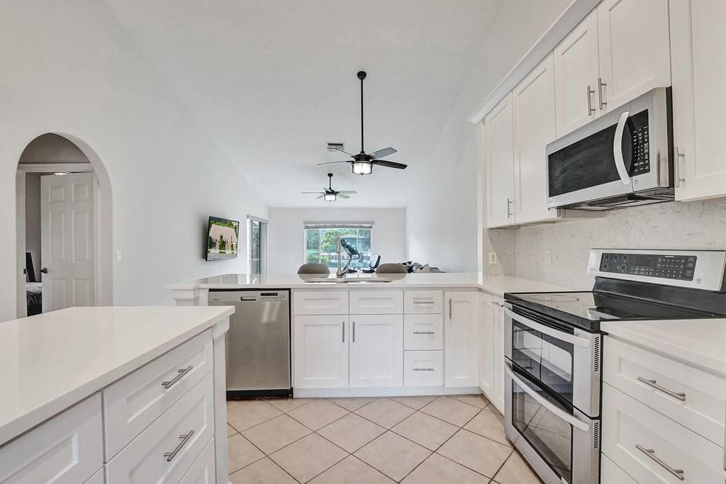 Look no further! Rare and meticulously maintained 2 Bed 2 Bath Villa located in a sought after gated community of Andros Isle. The vaulted ceilings, open concept kitchen, and sparkling lake view greets you at the front door. The home boasts many tasteful features including recently updated kitchen with new stainless steel appliances, quartz countertops, oversized island with built-in storage, 42'' shaker cabinets, soft closed drawers, Lazy Susan, and a spice rack drawer. Both bathrooms are also completely remodeled with Madeli vanities with quartz countertops, Aqua brass valves & fixtures, new Kohler toilets, and a modern alcove tub in the guest bathroom. All bedrooms have Pergo Laminate floor throughout. AC unit replaced in 2018 and freshly painted (2020).