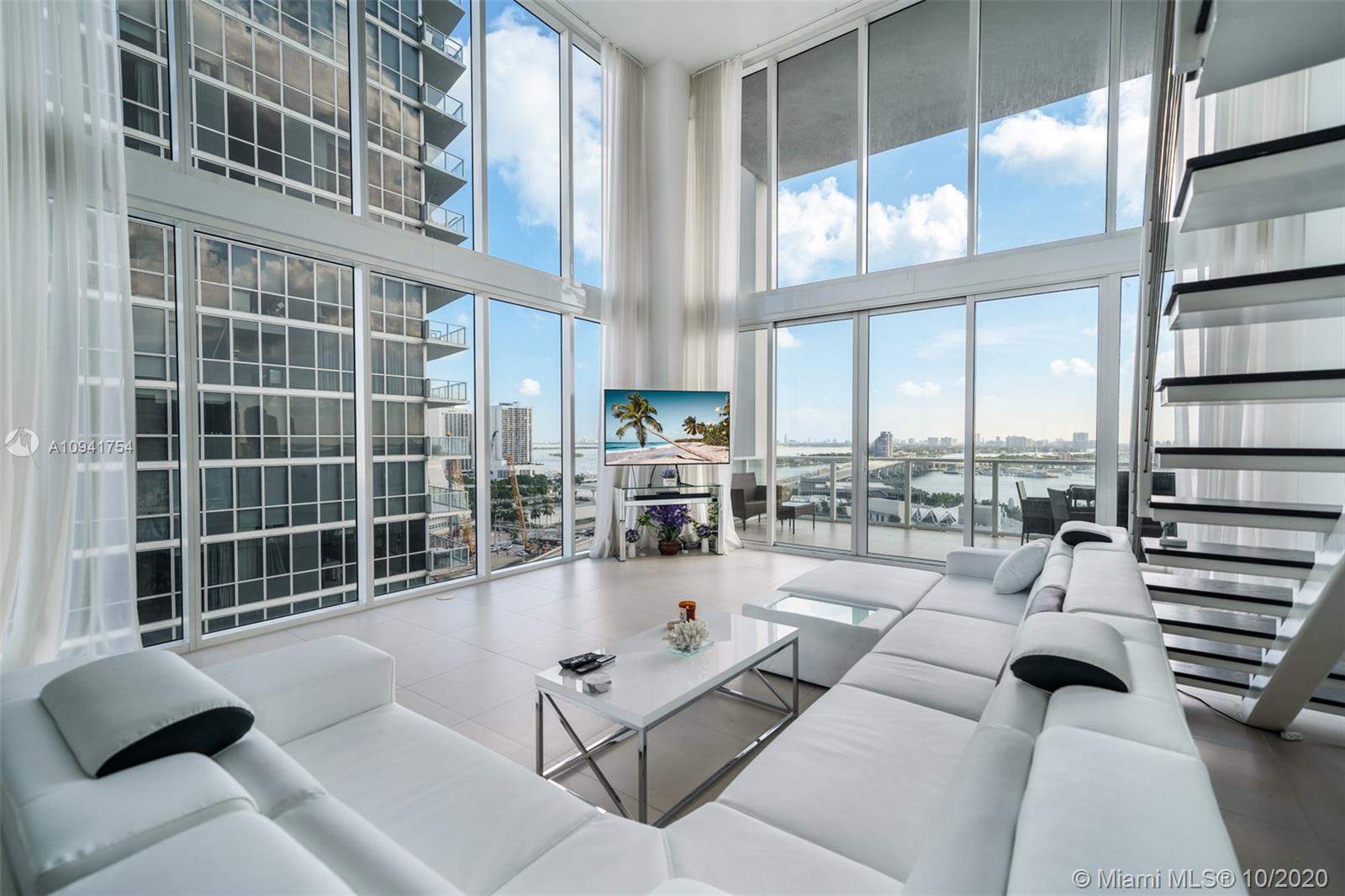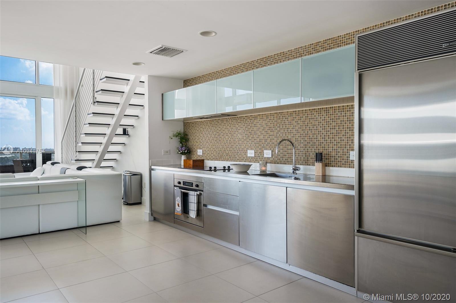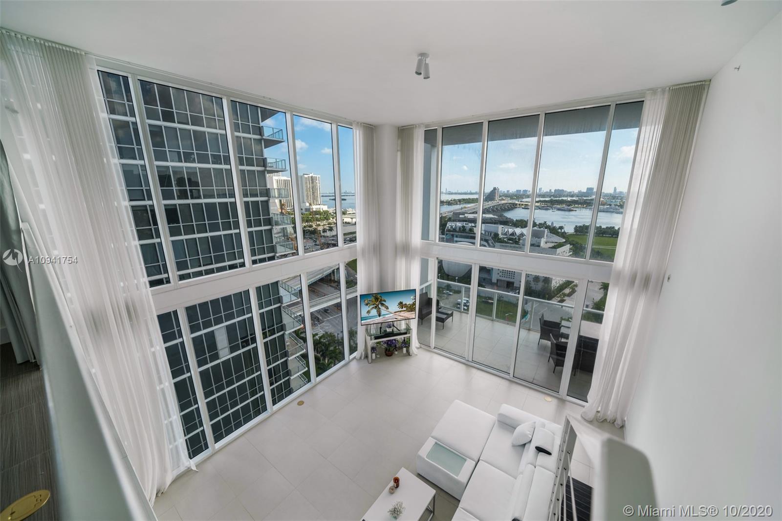 This stunning 1,730 SF 2BD/2.5BA corner loft at TMP will impress the pickiest of clients. Mesmerizing views of the bay and Museum Park await a wait through the 20 FT. walls of glass. This loft is a canvas for the person that wants to step outside of the box. Cutting edge S.S. kitchen including cabinets and counter tops as well as is outfitted with Bosch, Miele and Sub-Zero appliances. Walk out your front door and enjoy that you are in the center of the cultural hub of the city with the P.A.M.M, Frost museum of Science and the Performing Arts Center all right outside your door. T.M.P. is a full- service luxury building with 24-hour Concierge, 24-hour security, 5 pools, Clinique La Prairie Spa and more.