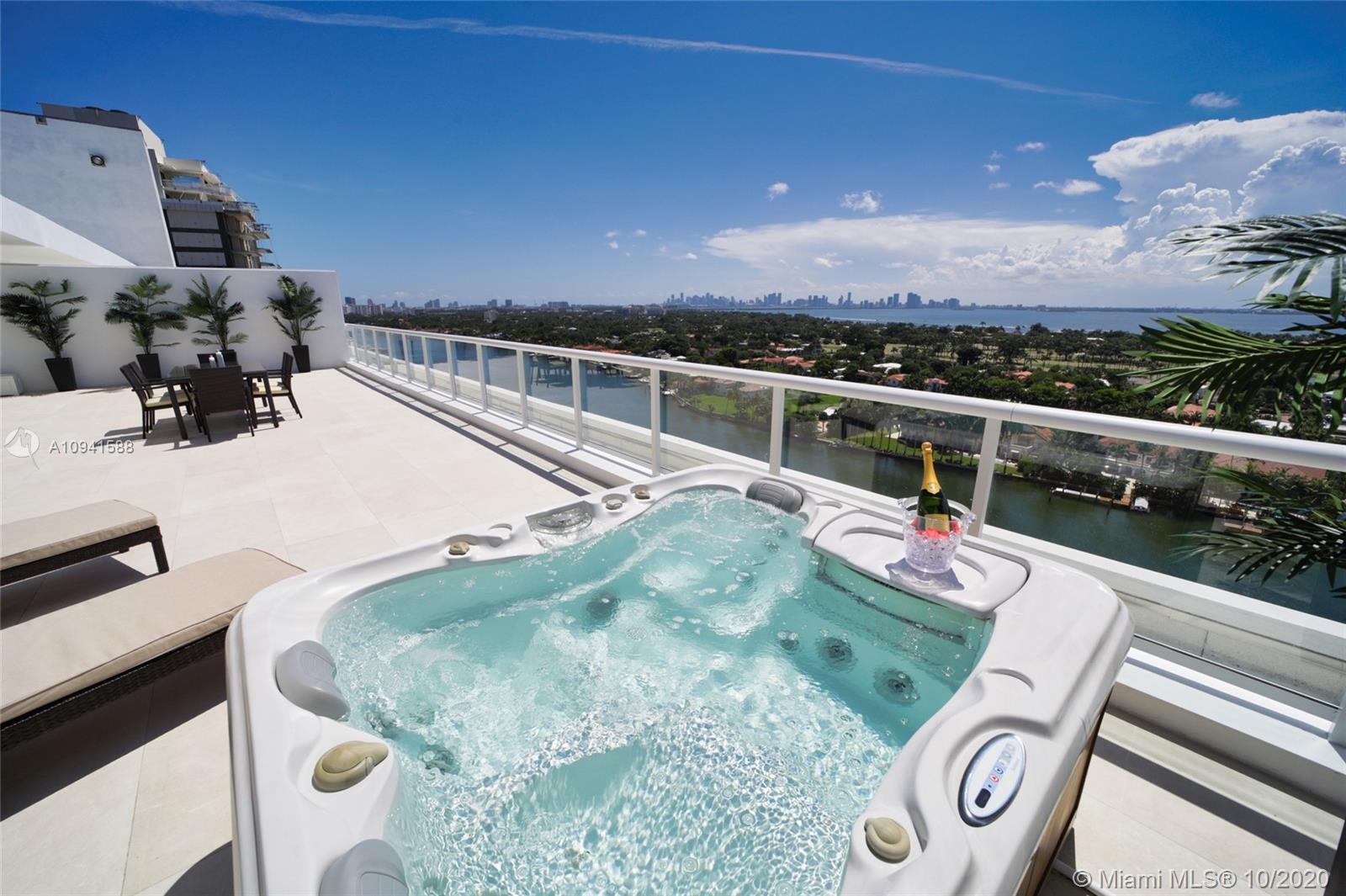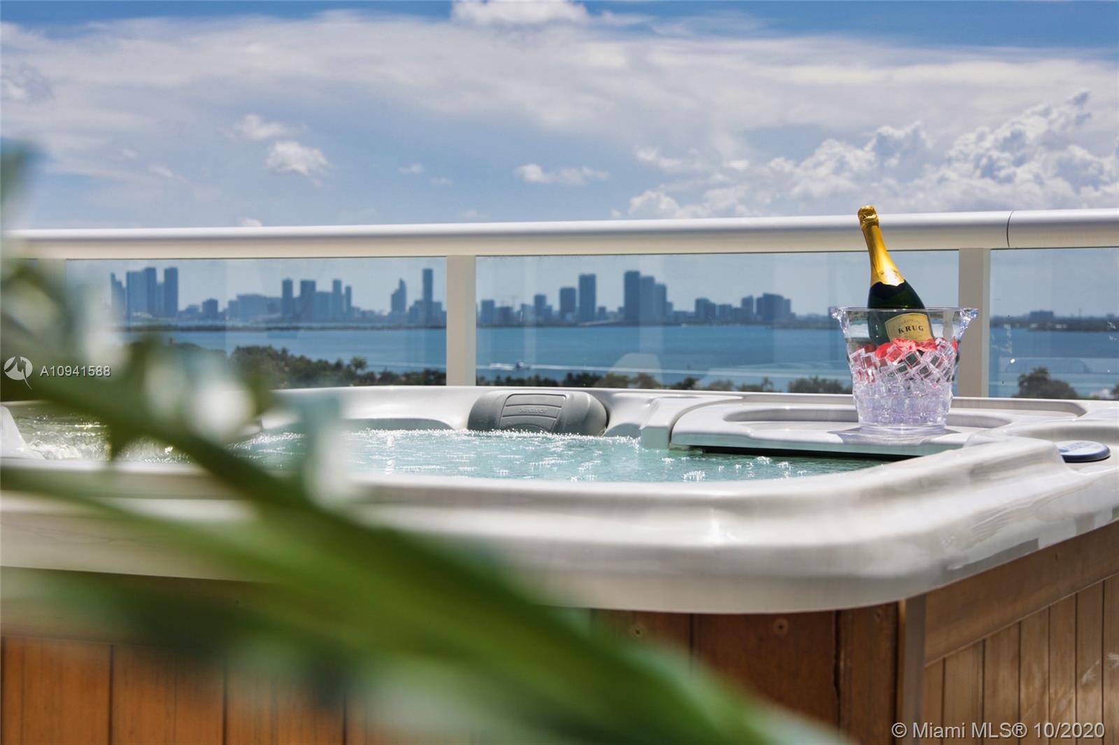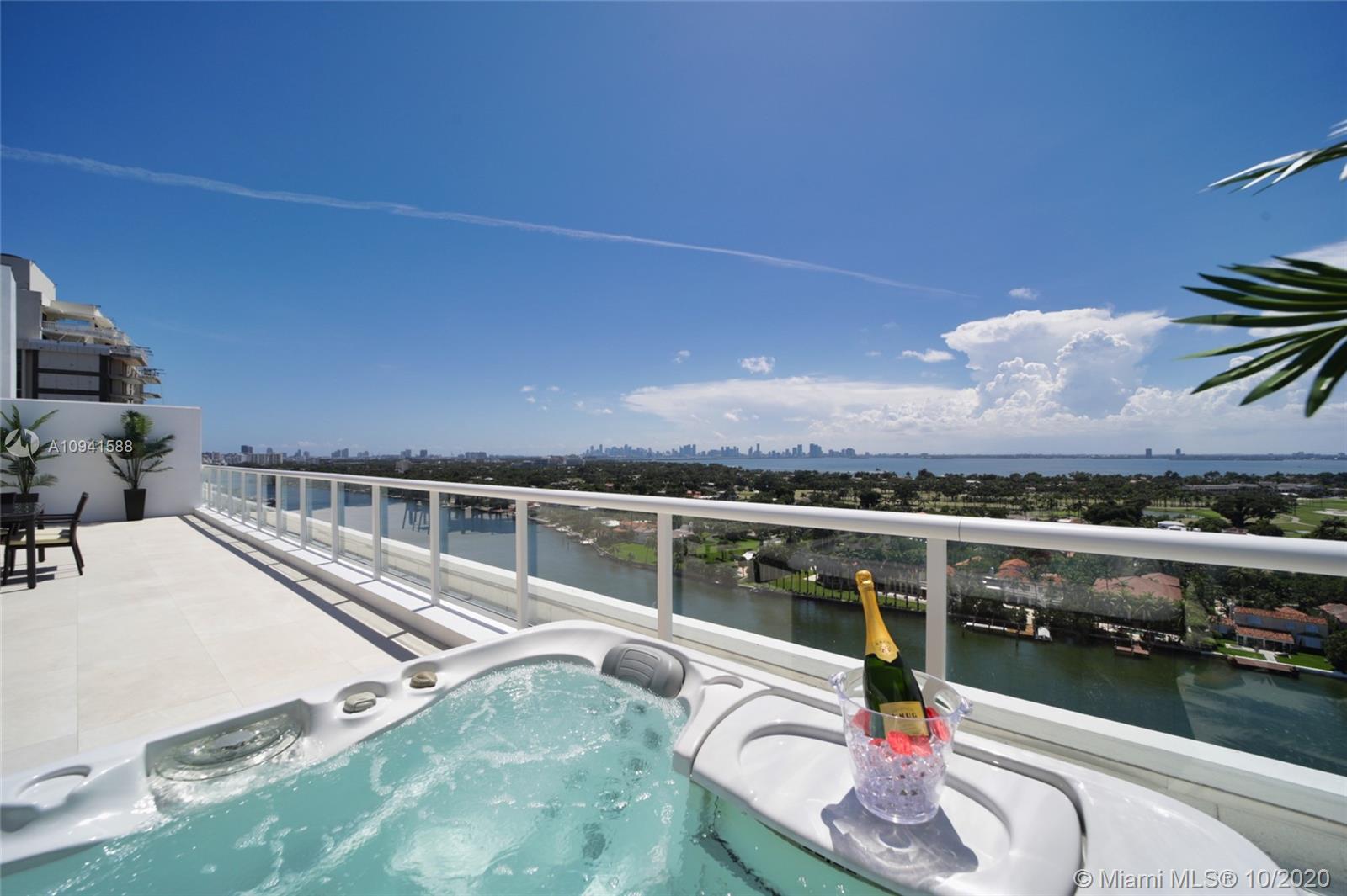 THIS LUXURY 3 BEDROOMS, 3 FULL BATHROOMS PENTHOUSE IS DESIGNED FOR YOU. 2,100 SQUARE FEET UNDER AIR CONDITIONING & AN ADDITIONAL 1,200 SQUARE FEET OF TERRACE W/ GORGEOUS VIEWS OF THE INTRA-COASTAL, BISCAYNE BAY, LA GORCE GOLF COURSE, & DOWNTOWN MIAMI AND THE SUNSET. AMAZING JACUZZI ON TERRACE. THIS UNIQUE PENTHOUSE INCLUDES A POOL-SIDE CABANA W/DRESSING ROOM & FULL BATH. THE RESIDENCE COMES FULLY FURNISHED, FEATURING ITALIAN SNAIDERO CHERRY WOOD KITCHEN CABINETRY, MIELE APPLIANCE & MEDIA CENTERS. CHERRY WOOD FLOORS. MARBLE BATHROOMS. LAUNDRY ROOM WITH SINK. PRIVATE STORAGE ON THE APARTMENT FLOOR. PRIVATE WINE CELLAR. 3 PARKING SPACES ASSIGNED. BUILDING HAS BEEN COMPLETELY RENOVATED WITH NEW GYM, POOL AREA, ELEVATORS, LOBBY AND HEATED POOL. BUILDING HAS PRIVATE MARINA. BOATERS DREAM.