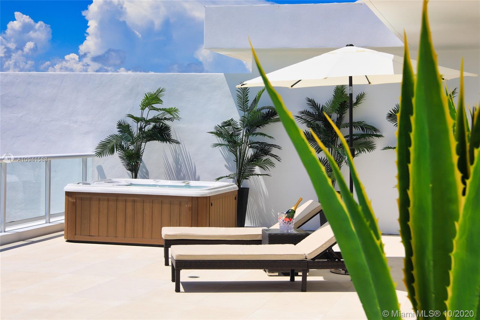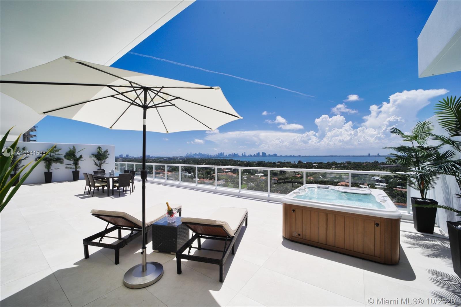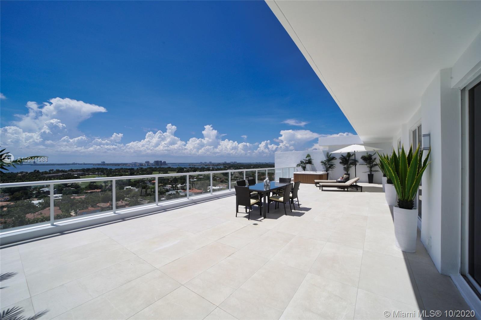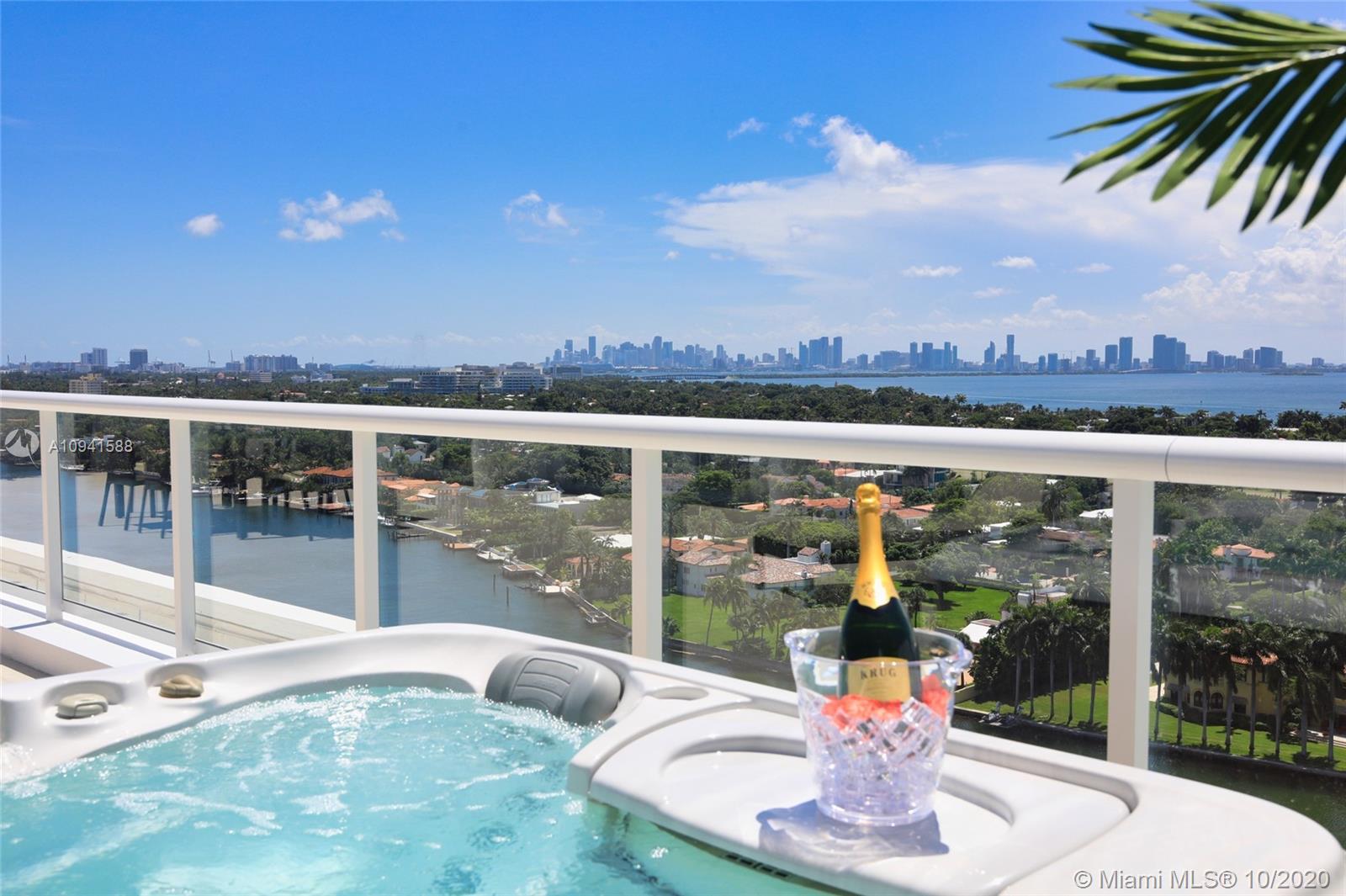 THIS LUXURY 3 BEDROOMS, 3 FULL BATHROOMS PENTHOUSE IS DESIGNED FOR YOU. 2,100 SQUARE FEET UNDER AIR CONDITIONING & AN ADDITIONAL 1,200 SQUARE FEET OF TERRACE W/ GORGEOUS VIEWS OF THE INTRA-COASTAL, BISCAYNE BAY, LA GORCE GOLF COURSE, & DOWNTOWN MIAMI AND THE SUNSET. AMAZING JACUZZI ON TERRACE. THIS UNIQUE PENTHOUSE INCLUDES A POOL-SIDE CABANA W/DRESSING ROOM & FULL BATH. THE RESIDENCE COMES FULLY FURNISHED, FEATURING ITALIAN SNAIDERO CHERRY WOOD KITCHEN CABINETRY, MIELE APPLIANCE & MEDIA CENTERS. CHERRY WOOD FLOORS. MARBLE BATHROOMS. LAUNDRY ROOM WITH SINK. PRIVATE STORAGE ON THE APARTMENT FLOOR. PRIVATE WINE CELLAR. 3 PARKING SPACES ASSIGNED. BUILDING HAS BEEN COMPLETELY RENOVATED WITH NEW GYM, POOL AREA, ELEVATORS, LOBBY AND HEATED POOL. BUILDING HAS PRIVATE MARINA. BOATERS DREAM.