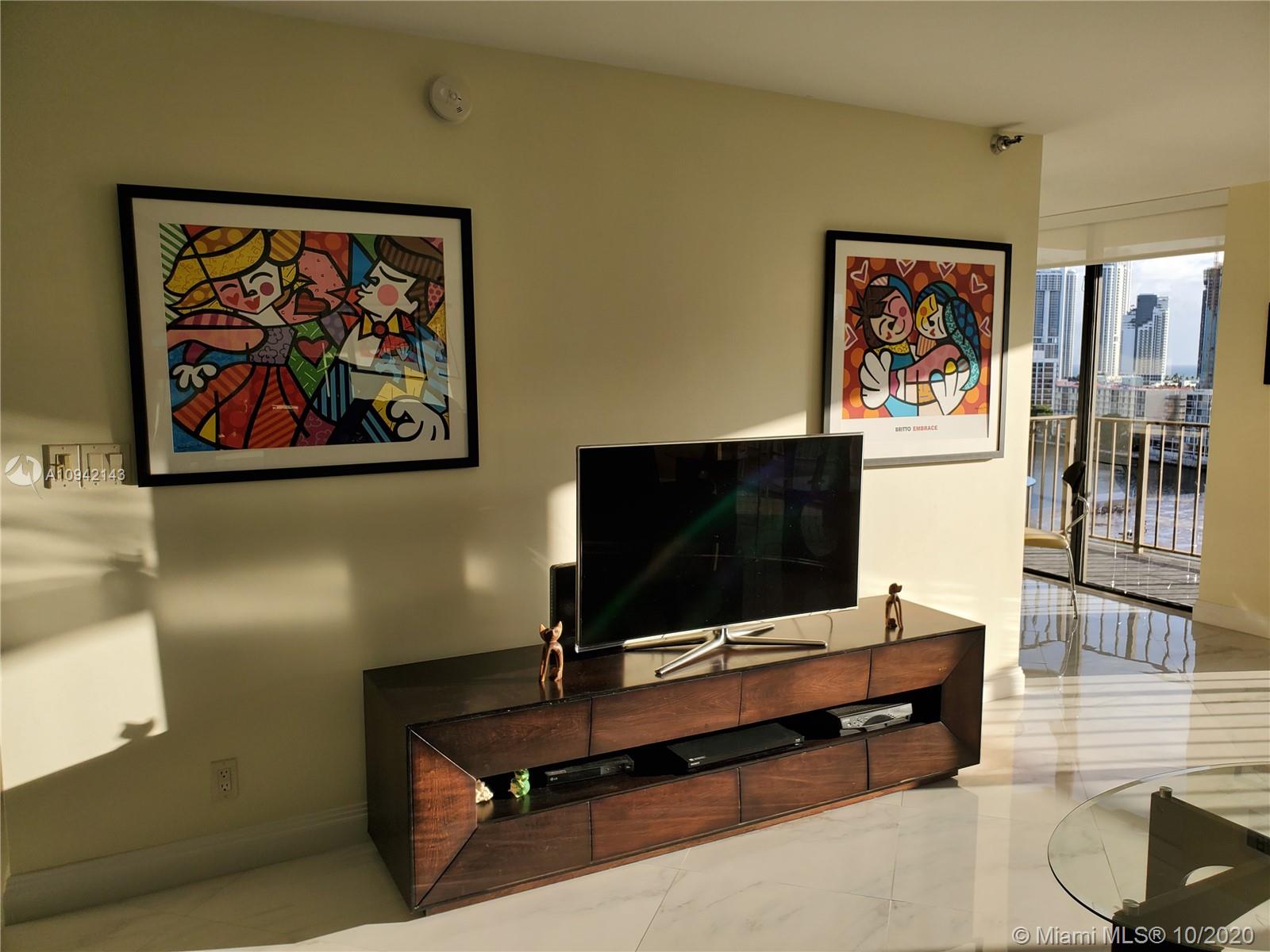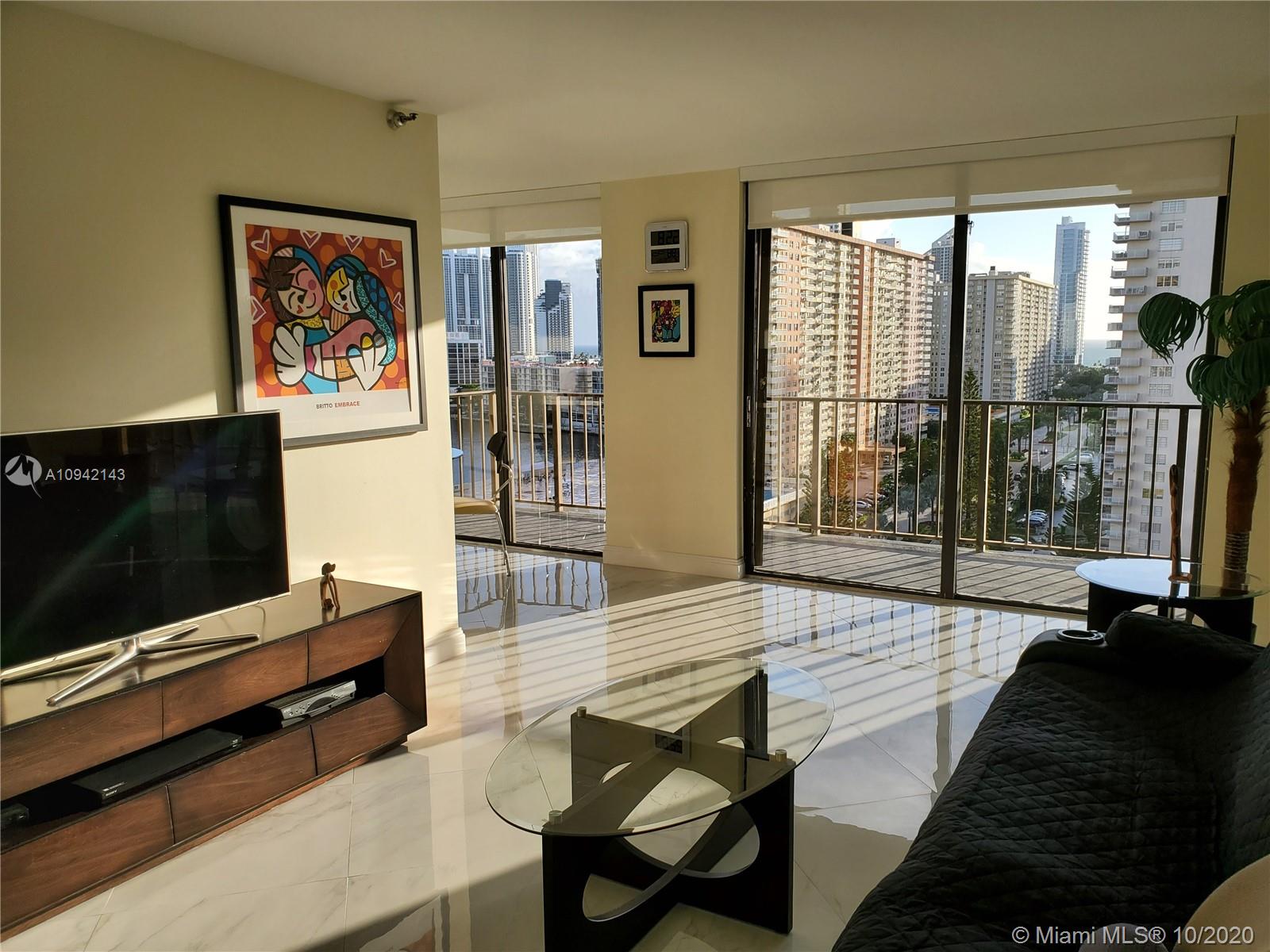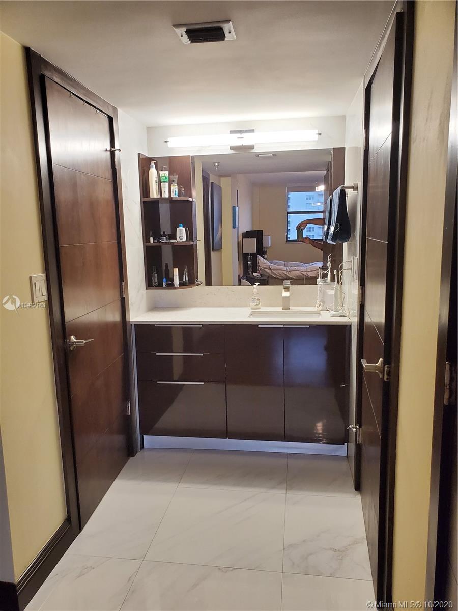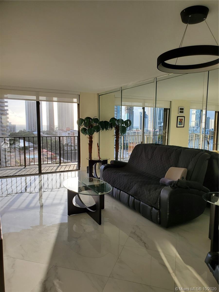 RECENTLY COMPLETELY REPLANED AND RENOVATED BIG 1 BR 1,5 BATH APARTMENT IN THE HEART OF SUNNY ISLES. FULL AMENITIES BUILDING WITH HEATED POOL, TENNIS COURT, GYM, SAUNA, PING PONG TABLE, LIBRARY, ETC. MAINTENANCE $357.00 INCLUDES CABLE TV, WI-FI INTERNET AND TOTAL INSURANCE FOR ALL APLIANCES. ASSIGNED PARKING IN THE GARAGE. 2 HUGE AIR CONDITIONED WALK IN CLOSETS. NEW WASHER/DRYER, NEW STAINLESS STEEL APLIANCES, NEW AIRCODITIONER. BREATHTAKING VIEW OF THE BAY, OCEAN AND SUNNY ISLES SKYLINE. FURNITURE ALSO IS FOR SALE.