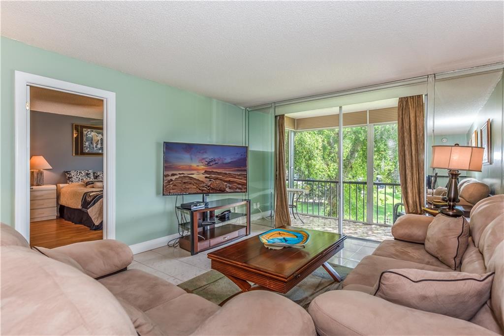 COUNTRY CLUB LIFESTYLE 2BR/2BA Par3 Golf Course and water view. Updated expanded Kitchen and Bathrooms. Tile and laminate flooring. Walk to the Clubhouse. Unique access to the guest bedroom. PAR-3 GOLF VIEW! 24 hr guard gated. Recreation Lease PAID IN FULL! FREE golf (except cart fees) on two 18 hole courses (PGA & Par3); Amenities include Restaurant, Billiard Room, Bbq/Picnic Area, Clubhouse, Courtesy Bus, Exercise Room, Heated Pool, Library, Putting Green, Sauna, Shuffleboard, Tennis, Pickle Ball, Vehicle Wash Area, Electric Car Charging Station. Close to shopping, dining & highways. 15 min. to the beach. Association says 55+ age required; MOVE into A BRIGHT SHOWPLACE!