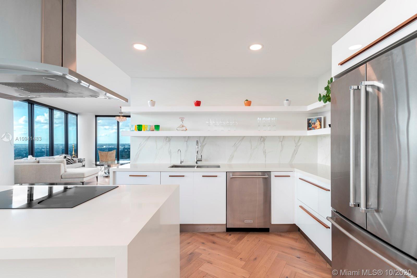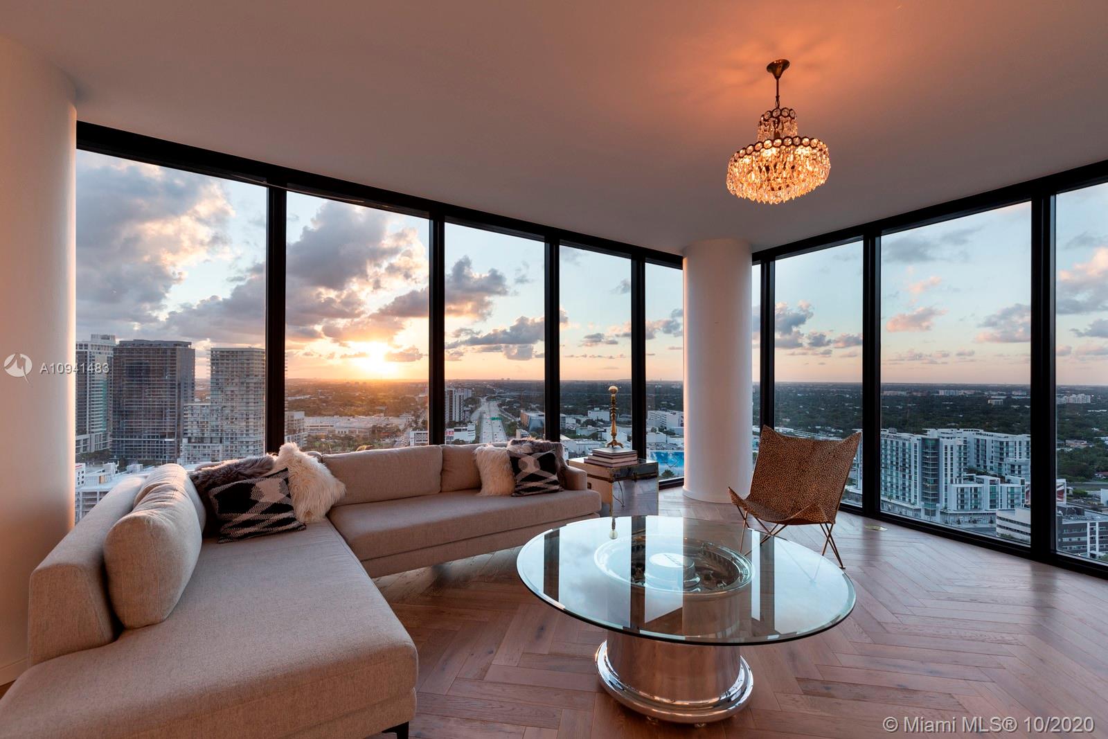 Lavish corner residence in the sky sets the new standard of luxury in Edgewater. Completely renovated with abundant designer components and tasteful finishes. Highlights include herringbone pattern European Oak floors, new lighting w/ Legrand switches and pair of vintage French chandeliers. Chef’s kitchen w/ Bosch and KitchenAid appliances, Quartz counters, and UV water filtration system. En suite bedrooms feature custom walk-in closets plus a custom wardrobe in main bedroom. Breathtaking sunset and Bay views from the floor-to-ceiling windows equipped w/ Somfy motorized shades. Building residents enjoy onsite gym, sauna, steam, 2 heated pools, jacuzzi, grills, theater and game rooms, business center, security, valet. Ideally located near Miami's renowned beaches, dining, and shopping.