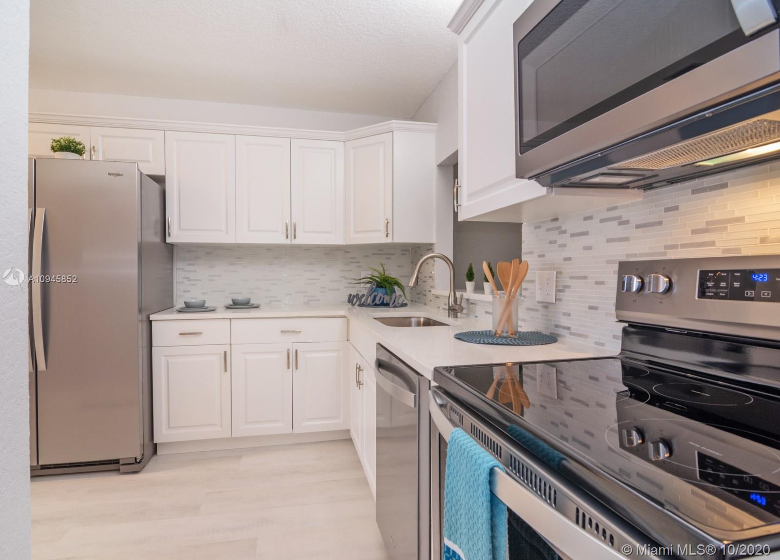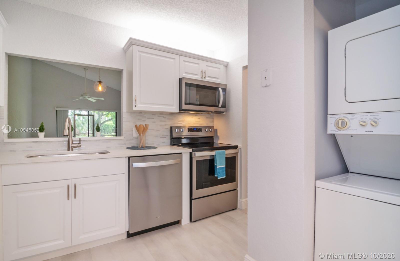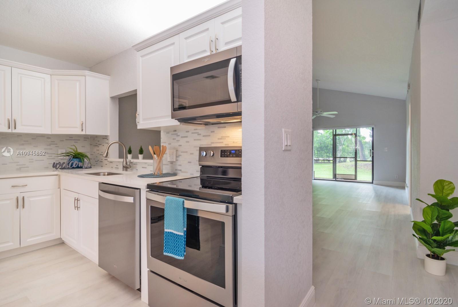 BEAUTIFUL TURN-KEY HOME SWEET HOME! Fully renovated in contemporary style, 3 bed/2 bath villa with split floorplan. BRAND NEW pristine white kitchen cabinets, quartz countertops, stainless-steel Whirlpool appliances and pass-through to dining area. Oversized walk-in closet and spacious second closet in primary bedroom. BRAND NEW bathrooms, BRAND NEW white vanities, BRAND NEW walk-in shower with glass doors in primary bath and tub in second bath. BRAND NEW modern floors and baseboards. Vaulted ceilings in spacious living area and freshly painted in neutral colors. Sliding doors open to peaceful and private screened back patio with view of garden area. AC 2019. Fresh landscaping and assigned parking directly in front of unit. Association cares for roof, exterior, common areas, & basic cable.