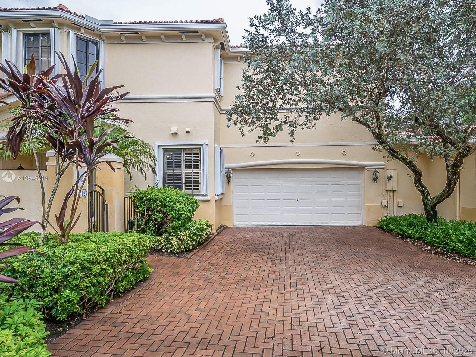 Immaculately maintained, move-in ready Coach Home in the heart of Weston. Steps away from Town Center w/restaurants, drug store, supermarket, specialty shops, and more. Ground floor unit with 1,610 SF under AC, 2 beds + den/office, 2 baths, 2-car garage. Upgraded kitchen w/Kitchen Aid SS appliances, Quartzite countertops, custom cabinetry, and breakfast bar. Beautiful solid wood flooring in bedrooms and tile floor in living areas. LED high hat lighting, Plantation style shutters, painted in neutral colors, His & Her walk-in closets, ADT alarm system, newer AC, accordion storm shutters, fully-screened patio, brick-paved private courtyard, security gate, conveniently located minutes from I-75, 595 Expy, and 869 Sawgrass Expy.