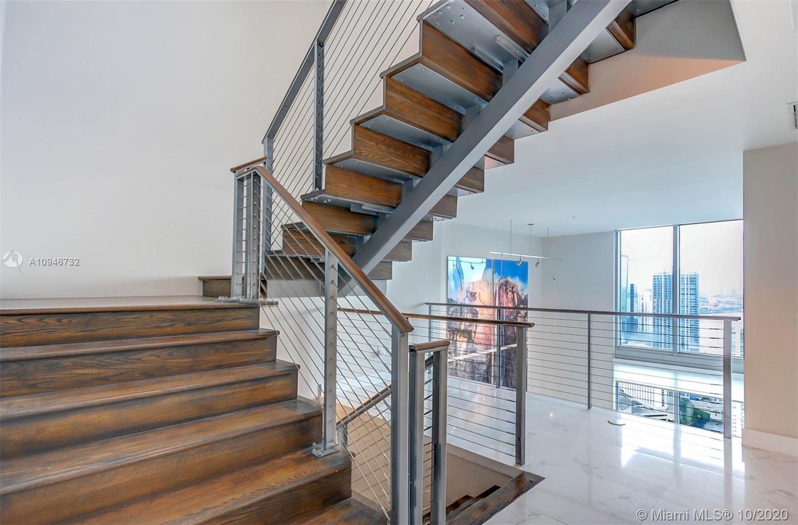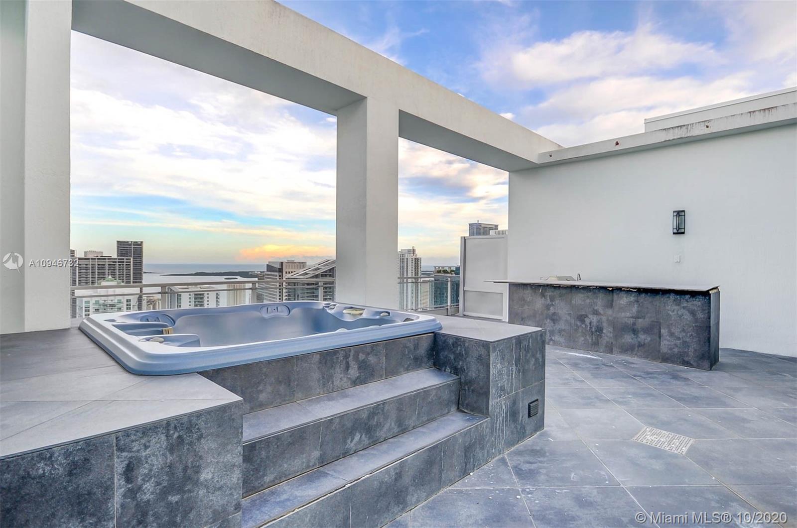 LIVE LUXURY IN THIS SPECTACULAR PRIVATE TWO STORY PENTHOUSE W/THIRD FLOOR ENTERTAINMENT & SUNNING AREA PANORAMIC WATER VIEWS OF RIVERFRONT. SPACIOUS AND OPEN FLOOR PLAN PLUS DEN,MODERN,ALL UPGRADED WITH PORCELANATO FLOORS ,HIGH IMPACT WINDOWS AND SLIDING DOORS,BEAUTIFUL EUROPEAN KITCHEN,TOP OF THE LINE APPLIANCES,CLOSET CABINETRY,SEE SPECTACULAR CITY & WATER VIEW FROM ANY SIDE OF THE UNIT. MANY AMENITIES POOL WITH CABANAS,SAUNA,SPA,GYM,THEATER-STYLE SEATING -HD SCREENING ROOM,24H CONCIERGE.VALET PARKING.PERFECT LOCATION, WALKING DISTANCE TO BRICKELL CITY CENTER AND DOWNTOWN.