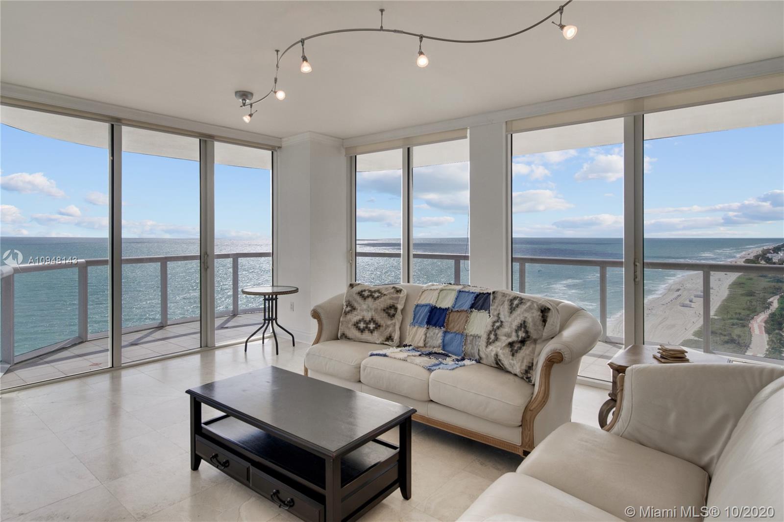 Nestled on Collins Waterfront Architectural District, Akoya is the third tallest building in Miami Beach offering stunning direct ocean and downtown views from this corner unit’s generous South East/West wraparound balcony. Featuring 3 BD, 2/1 BA, open floor plan with floor-to-ceiling windows welcoming natural sunlight. Kitchen includes stainless steel appliances and eat-in breakfast nook. Master Suite with walk-in closet and separate shower and tub. Premium amenities are available exclusively to residents and include modern fitness center, pool, beach club, spa, tennis, and racquetball facilities. Valet and 24-hour security. Minutes from Bal Harbour shops and fine dining. An ideal luxury beach retreat. 3 prkg spaces included.