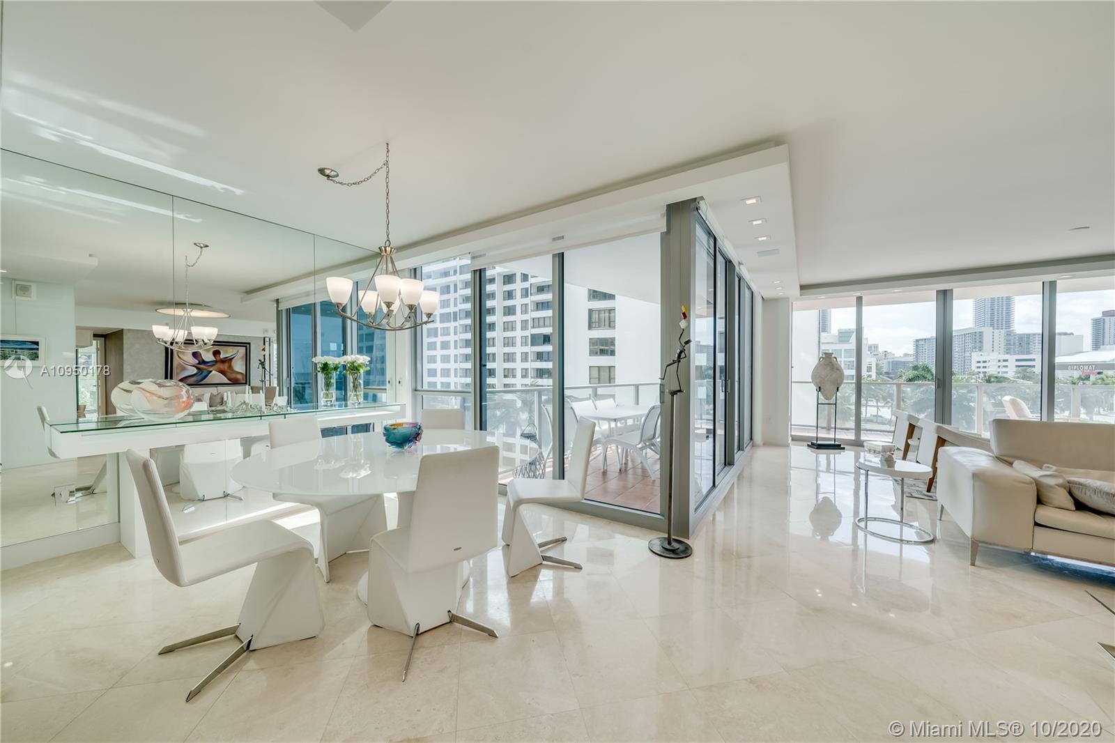 Floor to Ceiling Impact Windows & wrap around Balconies facing the Ocean & Intracoastal! This designer finished modern condo features built in wall unit & office desk, Marble Floors, Snaidero cabinets, Sub Zero & Miele appliances, custom remote control roller shades & drapes, soffits, LED lighting, built in closets & high end designer light fixtures & wall coverings. Third bedroom open to living room w/ custom European style bi-fold doors to create an office or bedroom. Floating infinity vanity in 3rd bath. Custom mirrors & glass paneled walls. 5-star amenities: 2-story fitness spa, ocean side pool, hot tub, towel service, tennis, media & party rooms, concierge, business center, pet friendly & Hollywood Beach at the ground floor! Close to Gulfstream, Aventura Mall, Restaurants & Airports!