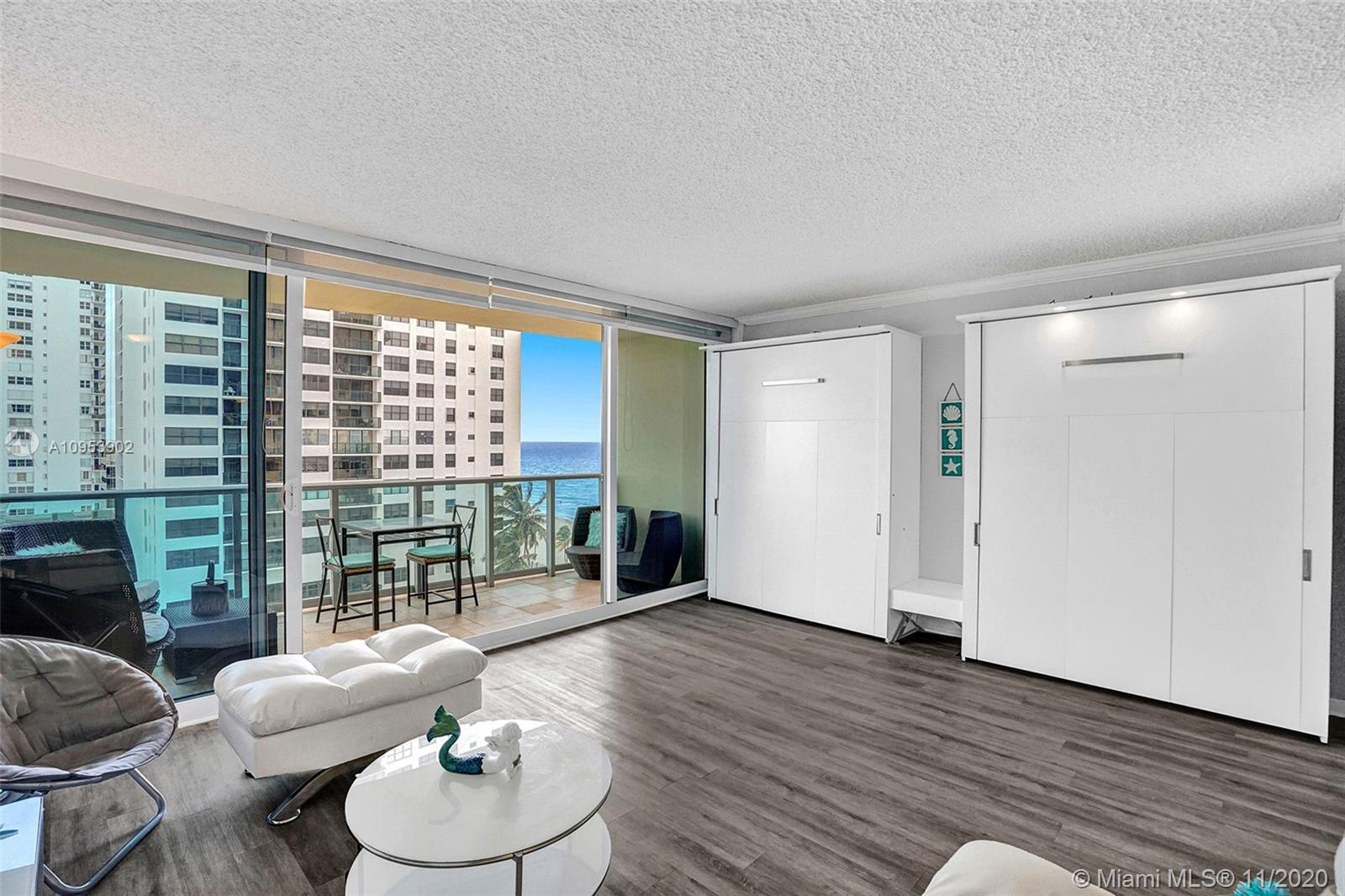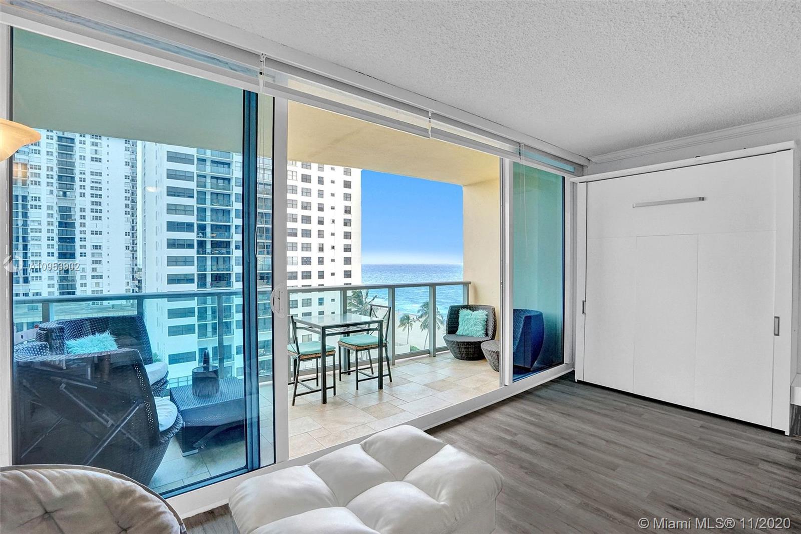 Perfect Beach home escape! Spectacular ocean and city views from your large terrace. This nicely renovated and fully furnished Studio offers 2 custom Murphy beds, custom made blinds, washer/dryer combo in the Unit. The Wave -Luxury building right on the beach with a brand new resort style pool area, new gym overlooking the ocean, beach services, new restaurant coming soon. Building perfectly located near FLL airport, malls, restaurants, Hollywood boardwalk and more.