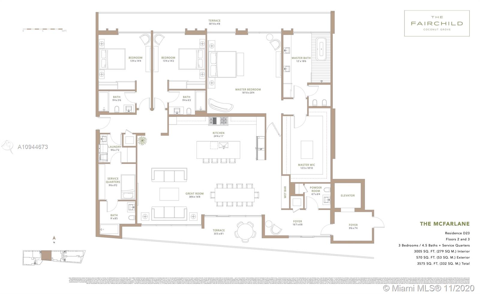 Experience the best in boutique waterfront luxury living at The Fairchild in Coconut Grove. One of only 26 residences, Unit #306 features 3 bedrooms, 4.5 baths + service quarters, 3,575 square feet of total living space, private elevator access, 11-foot ceilings, natural stone flooring, gourmet Poliform chef's kitchen & wet bar, Sub-Zero/Wolf appliances, multiple terraces & more. Designed by world-renowned architect Max Strang, The Fairchild offers resort-style amenities that balance sophistication with serenity, including 24-hour Concierge & Porter service, tranquility spa with Hammam, sauna & steam, a state-of-the-art fitness center, floating dock & boat slips, and the most unique rooftop pool in all of Miami with private cabanas, summer kitchens, outdoor theatre and endless ocean views.