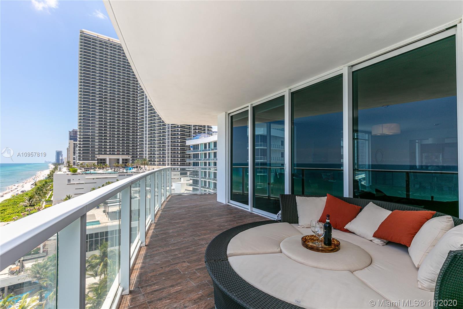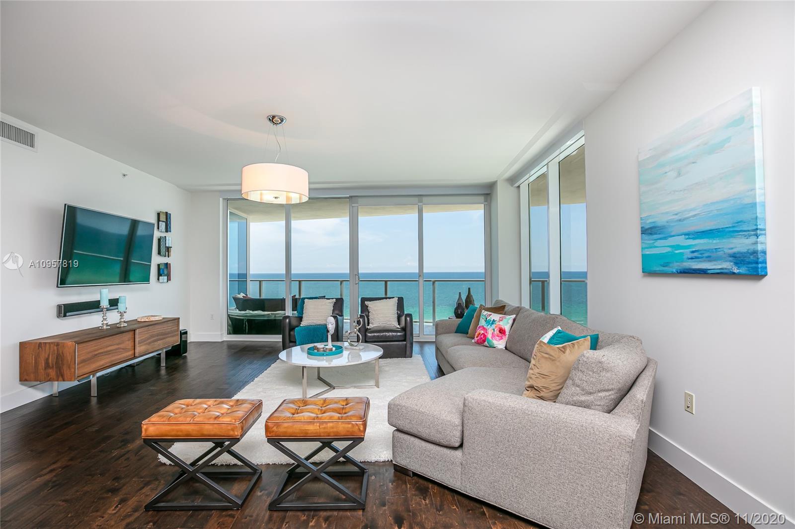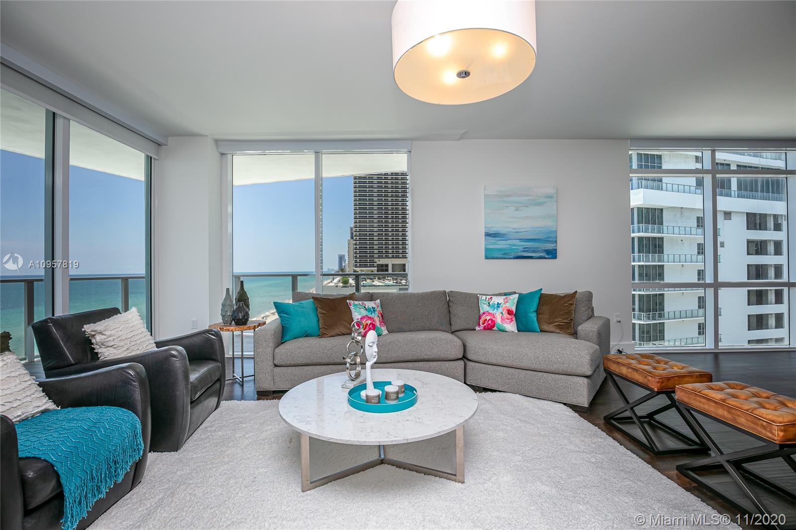 Fall in love with this gorgeous 3 bd, 3 1/2 bath + a den/office residence. Floor to ceiling impact windows, high-end appliances and finishes throughout, smart-home features and designer touches make this the ultimate vacation or full-time residence for the most sophisticated buyer. Enjoy the sunrise from your private oversized terrace and the master suite. Spacious split floor plan with plenty of closet space. Great value in the famous Apogee Beach Condo - a luxury, boutique ocean-front complex with 5-star amenities: 24/7 concierge and valet service, friendly staff who know your name, professional management team, full beach service, state of the art gym featuring Peloton Bikes, sauna and massage rooms, elegant pool area, private lounge, billiards room and more.