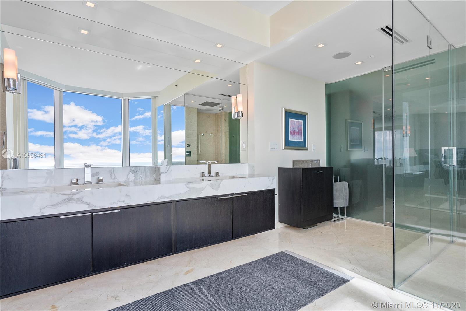 Stunning 270 degree ocean, intracoastal & downtown views from this extra spacious 2,550 square foot 3 bedroom corner apartment in the sky. This exceptional 37th floor unit has been gutted and completely renovated, featuring beautiful 18" marble floors throughout. Soffits and electronic blinds have been added, rain showers, Duravit and Toto bath fixtures are installed throughout the home. A Crestron home automation system controls the blinds, climate, TV and surround audio. Access 2 large balconies from the living room, kitchen or master bedroom to enjoy the sensational views from outside. Included in the sale are one assigned parking space on P2, free additional valet parking plus a dedicated storage unit. All special assessments balances have been paid off in full for this unit!!!