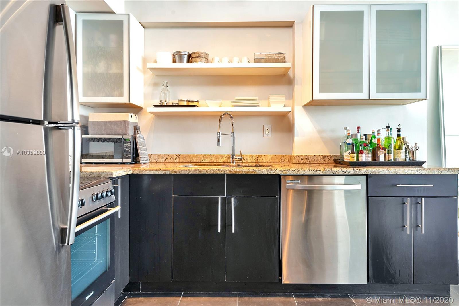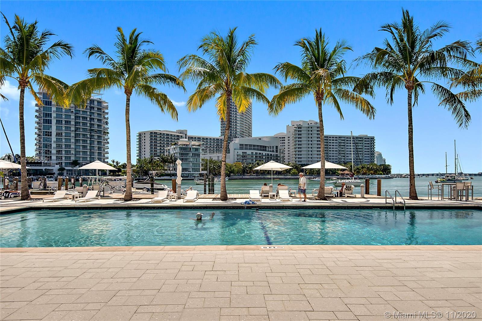 Best studio on Belle Isle! Top floor, wall of windows provide full bay and ocean views from Lincoln Road to Brickell and south to Key Biscayne and Port Miami from this rarely available 12 line. Totally reconfigured to include an entry way and inviting alcove sleeping area complete with flat screen TV, shelves, reading light, with views to sky and South Beach skyline. Concealed from the large living area by frosted sliding glass doors. Open kitchen, great closet space, glass enclosed shower, impact windows. Newly remodeled large gym with bay views, heated pool and jacuzzi, 2 separate foliage enclosed BBQ areas directly on the water. One parking space. Newly refurbished Wimbledon blue tennis court. Full service building, doorman, valet, vast lobby overlooking pool. A must see.