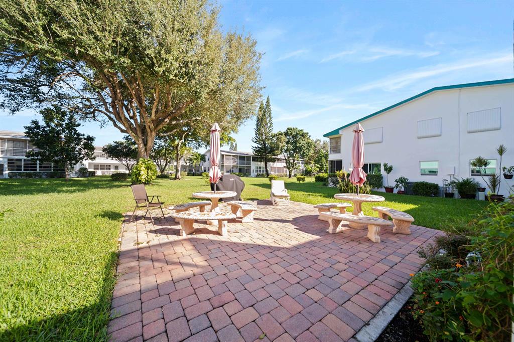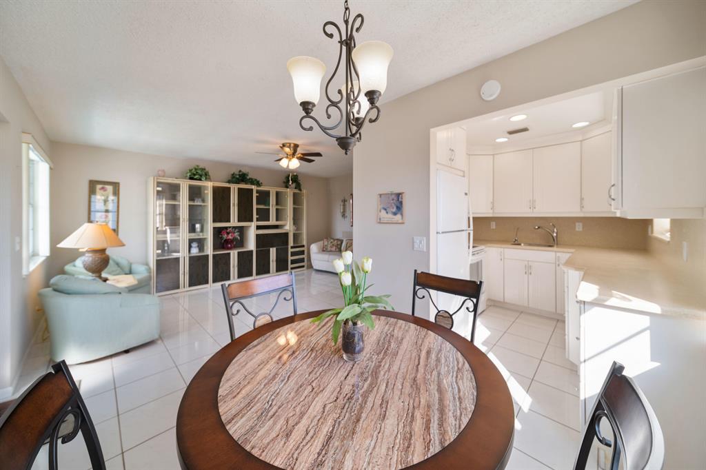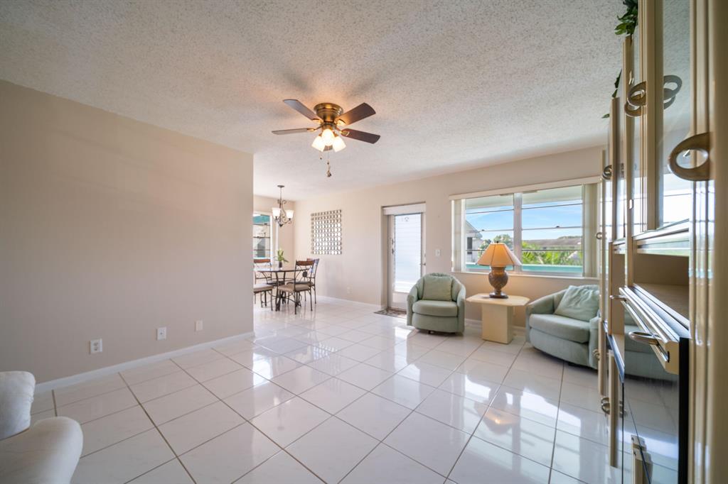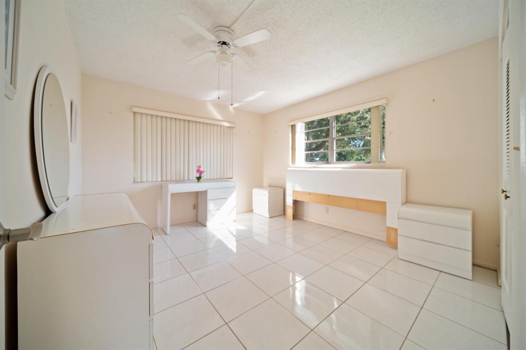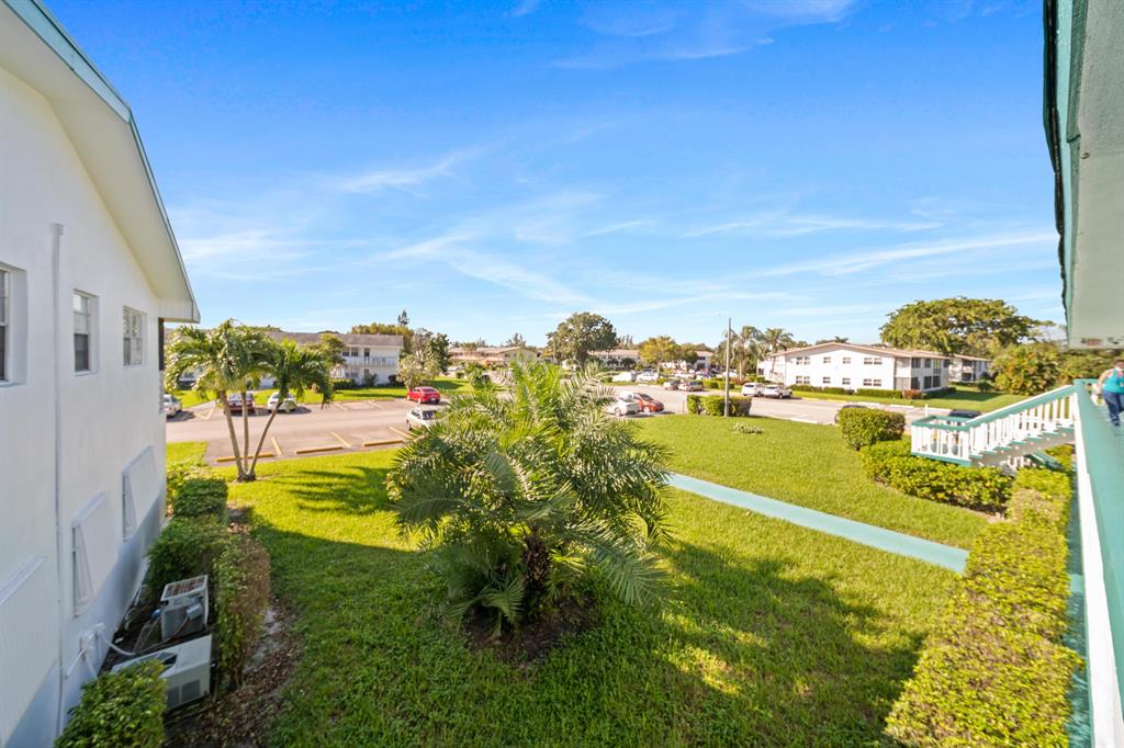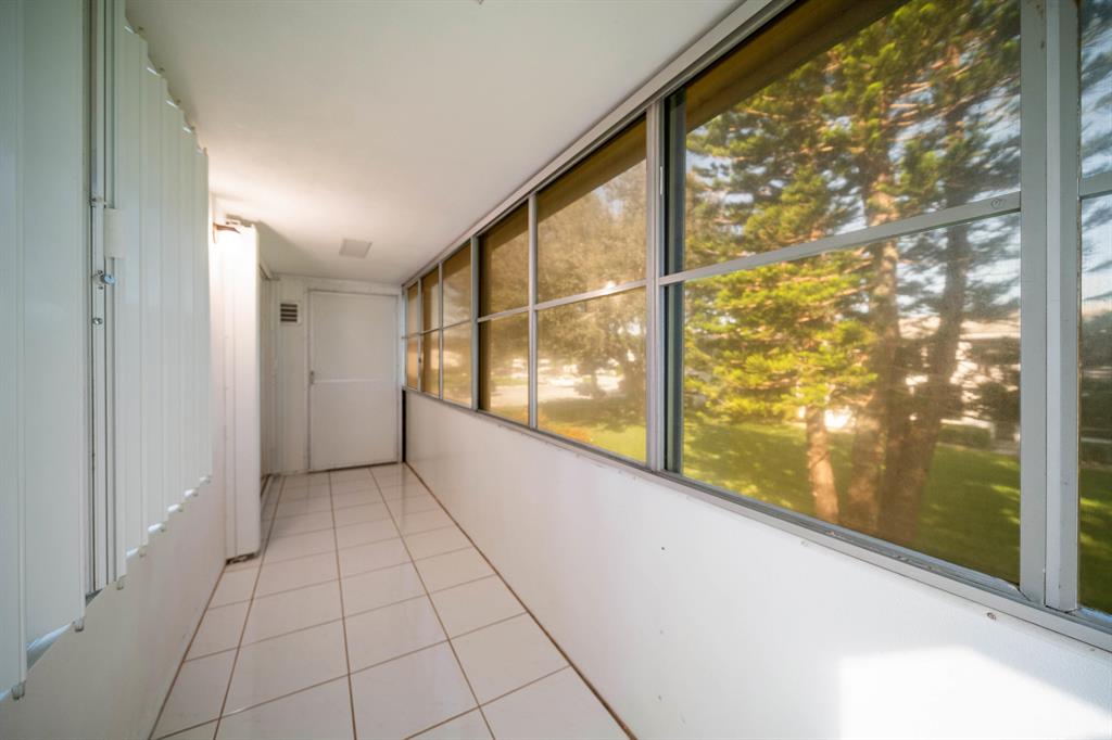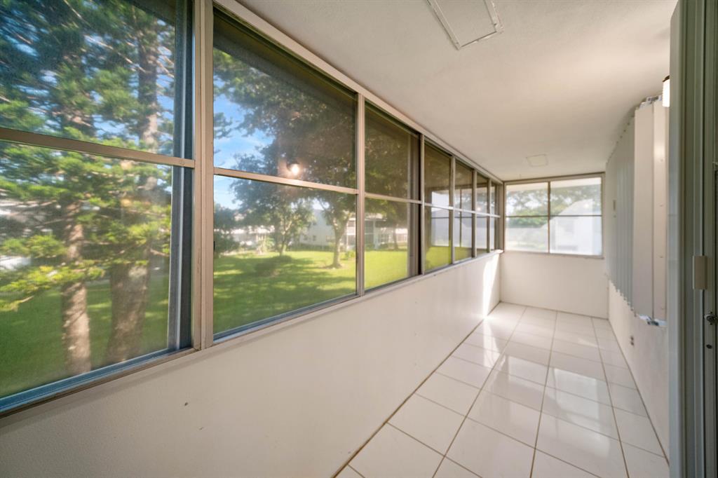 Sunshine abounds in this 2nd floor corner unit! This 2 bedroom unit overlooks a lovely patio with lush foliage. This remodeled unit boasts a custom kitchen with high hats, under cabinet lighting and Corian countertops. The full bath was remodeled with a walk in shower. Sparkling ceramic tile floors complete this outstanding property. This unit is equipped with a new hot water heater, newer AC and a water purifier. For your protection storm shutters complete this fantastic apartment. This building has a lift for all its residents.. Cats are allowed. You will enjoy the South Florida lifestyle with amenities such as a fully equipped fitness center, club house with over 1000 seat theater, free transportation, close proximity to PBI airport, shopping, beaches and many restaurants