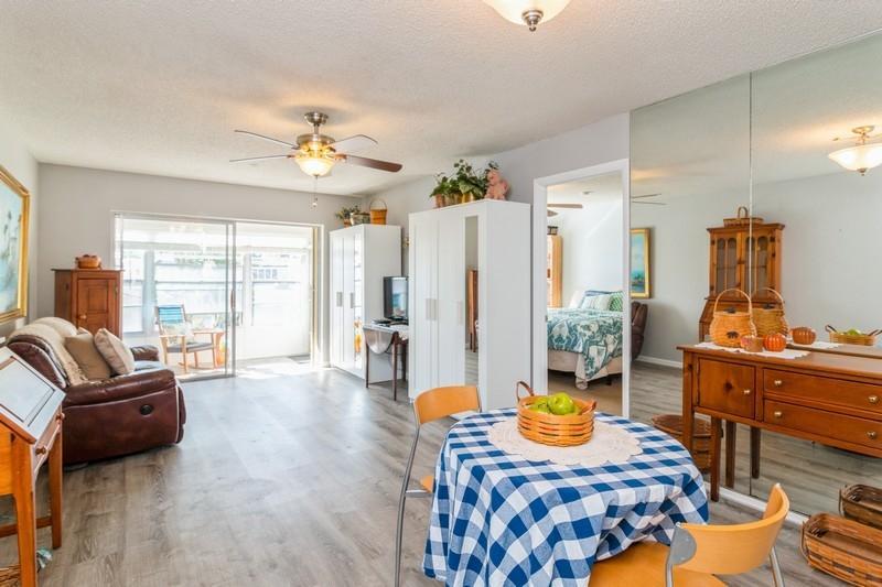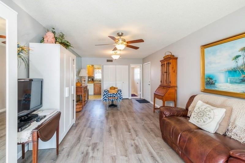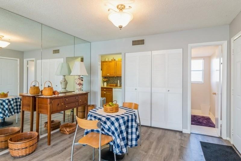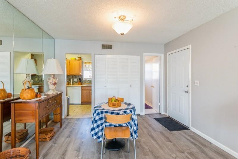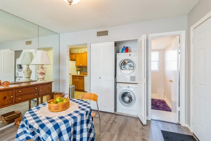 This spacious and bright 1 bdrm, 1 1/2 bath, first floor freshly painted apt features solid Wood kitchen cabinets, new flooring, ''ON DEMAND'' hot water, as well as a washer/dryer and updated half bath. Amenities include24 Hr Gated Sec, A Clubhouse w/ an Arts and Crafts Room, ATM, Auditorium w/ stage a kitchen where dinners, dances, shows, and bingo are held. BBQ, Billiards, Bocce, Bus Service, Cable TV via Opticaltel, Cards & Games Room, Computer Room, Exercise Center w/ inst, Grounds Care, Laundry Rooms, Library, Maintenance, a Newsletter (Village Talk), PBC Library Book Mobile, the main pool is outdoor and heated, 5 Satellites pools are present, outdoor & heated. Refuse Removal, Sauna, Shuffleboard courts, Social Director - Spa, Wi-Fi.