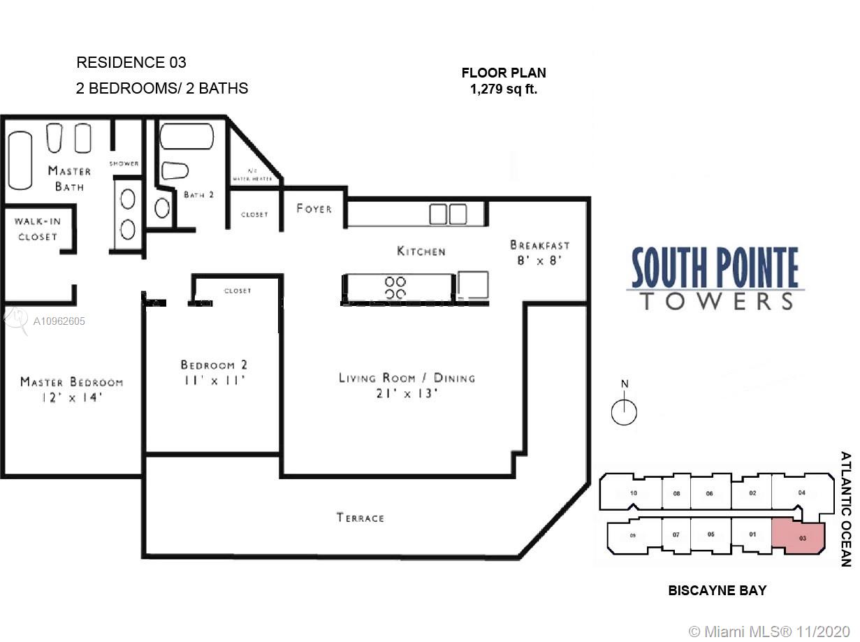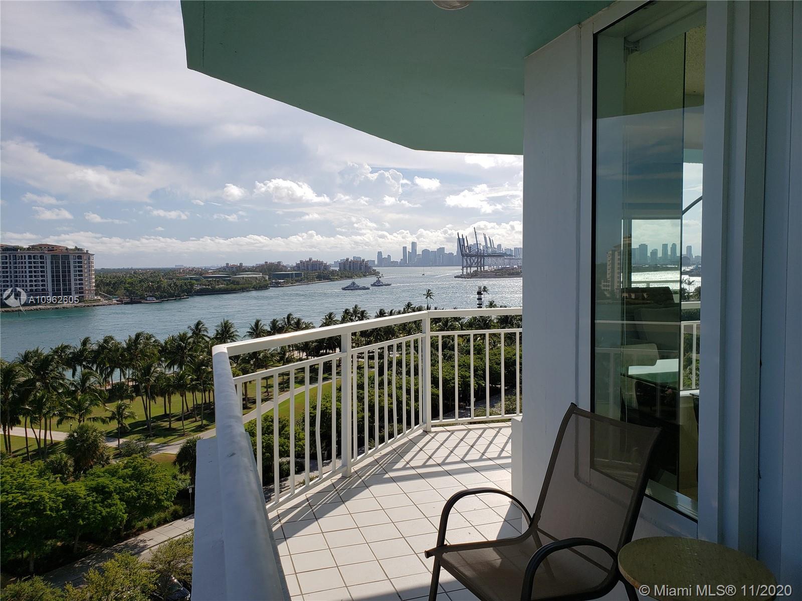 Best Location in South Beach and Best Location in Building S.W. Corner. Magnificent Views of City, OCEAN and Fisher Island. 2 Bedrooms 2 baths. 1,250 SF Living Space. 259 wraparound Terrace, Total 1,509 SF. Hurricane Windows.