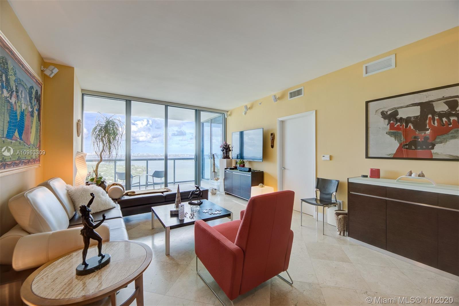 Stunning waterfront 2 Bedroom residence with incredible unobstructed Biscayne Bay & skyline views. Sought after high floor Line 9 with marble floors, floor-ceiling impact glass and large balcony. Open Kitchen with Italian style cabinetry, granite counters, stainless steel appliances. 2 full baths w/ glass enclosure, guest bath, walk-in closet, washer/dryer. Includes 2 parkings spaces & 1 storage. Resort Style amenities include, 2 Infinity heated pools & hot tubs, Steam Room, Sauna, Movie Theater, massive GYM, Cycling, Kids Playroom, Teen/Game Room, Party Room, Business Center, BBQ, 24hr concierge, Valet. Semi private elevator foyer. Close to the best Restaurants/Shops of Design District, Midtown, Wynwood. Just a short drive to Miami Beach, MIA airport, Downtown, Brickell.
