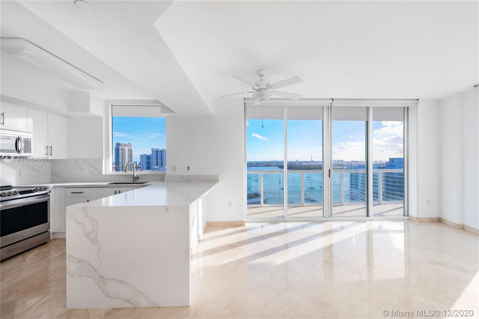 Total Gem and rare opportunity to live on a high floor with UNOBSTRUCTED panoramic views of Biscayne bay and the Ocean. This newly renovated 1 bedroom 1.5 bath unit features Marble floors throughout, large wrap around terrace, new LG stainless steel appliances and Quartz counter tops. A must-see boutique building with the finest amenities:24 hr. concierge & valet, brand new state-of-the-art gym, tennis court & resort-style pool w/cabanas & Barbecue/ Bar.