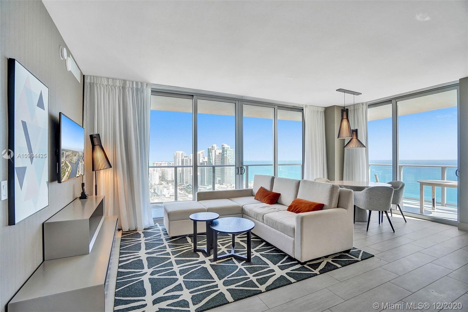 Miami Investment Waterfront Property in a Condo-Hotel with High ROI, Yield Opportunity. Miami is one of the top tourist destinations and always has its doors open to them offering entertainment, activities, and relaxation for everyone. Located in Hollywood Beach, next to exclusive Golden Beach and Millionaire's Beach, Hyde Beach is near all tourist attractions and access point including Cruise Port of Miami, and both international airports. This 2 bed 2 bath unit features wraparound balcony with views of the ocean, intracoastal, and the city and has no rental restrictions allowing short term rentals in AIRBNB or any other platform, or can be signed up to the building's hotel program. Amenities are private beach, 3 pools, boat dock, outdoor cinema, bar, gym, grill, restaurant, and more.