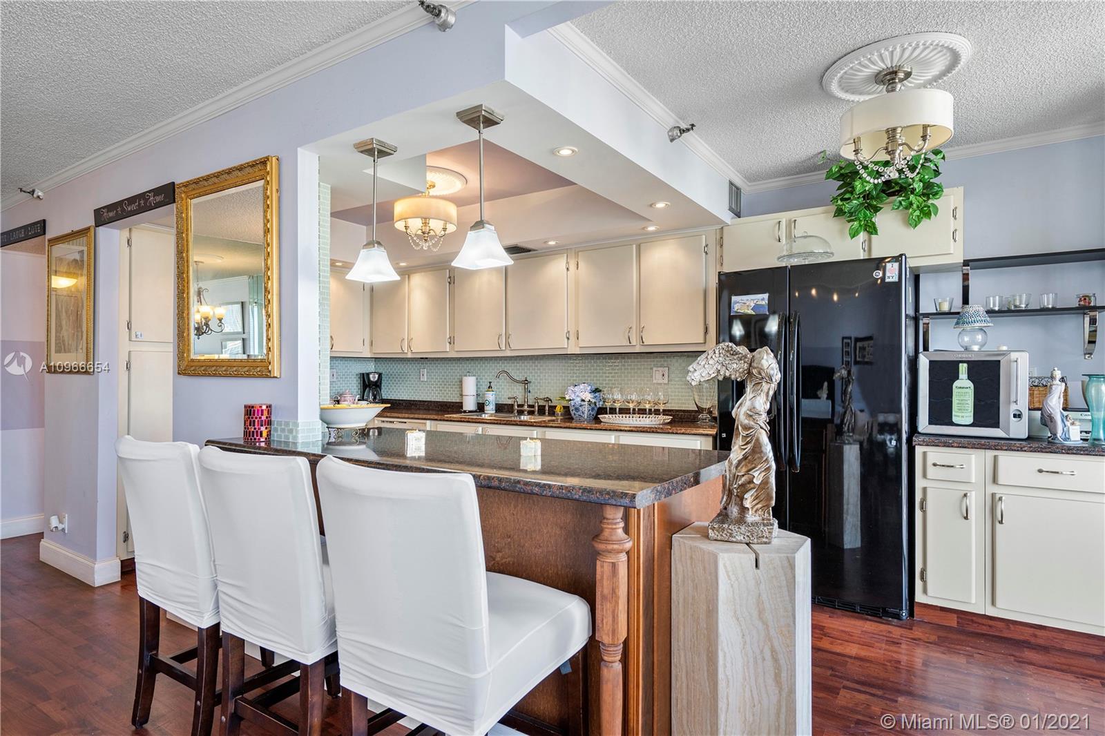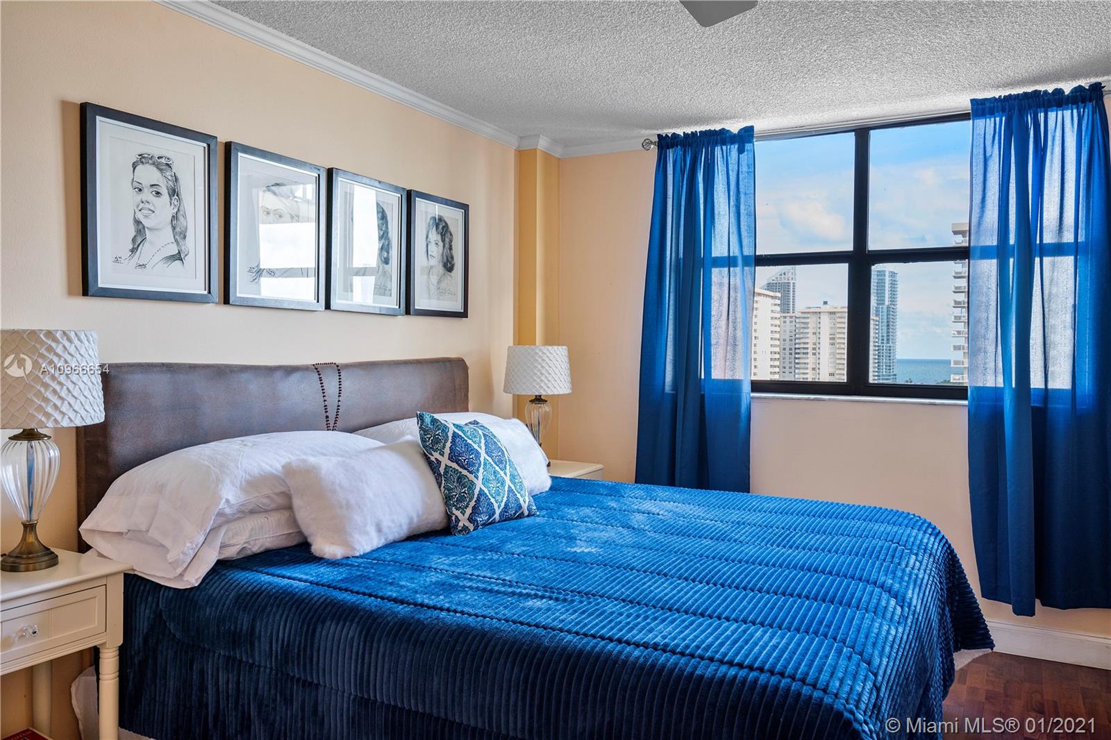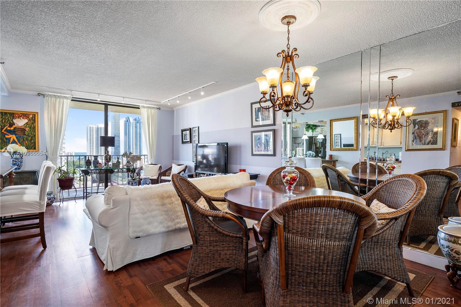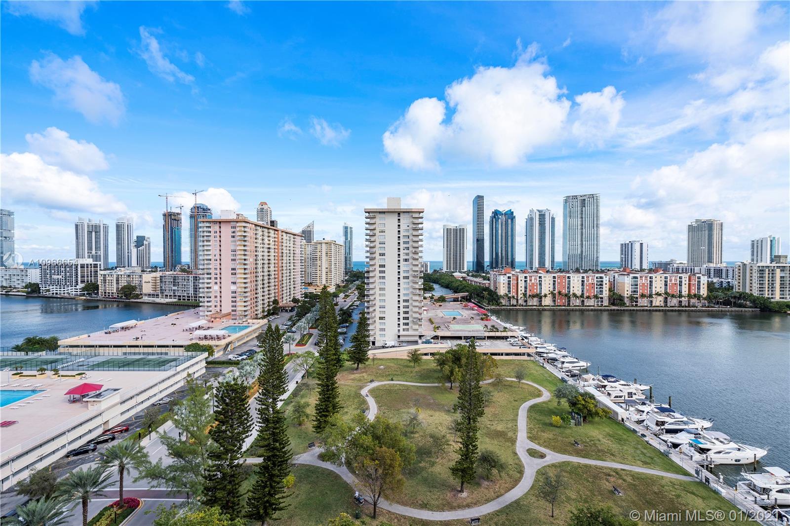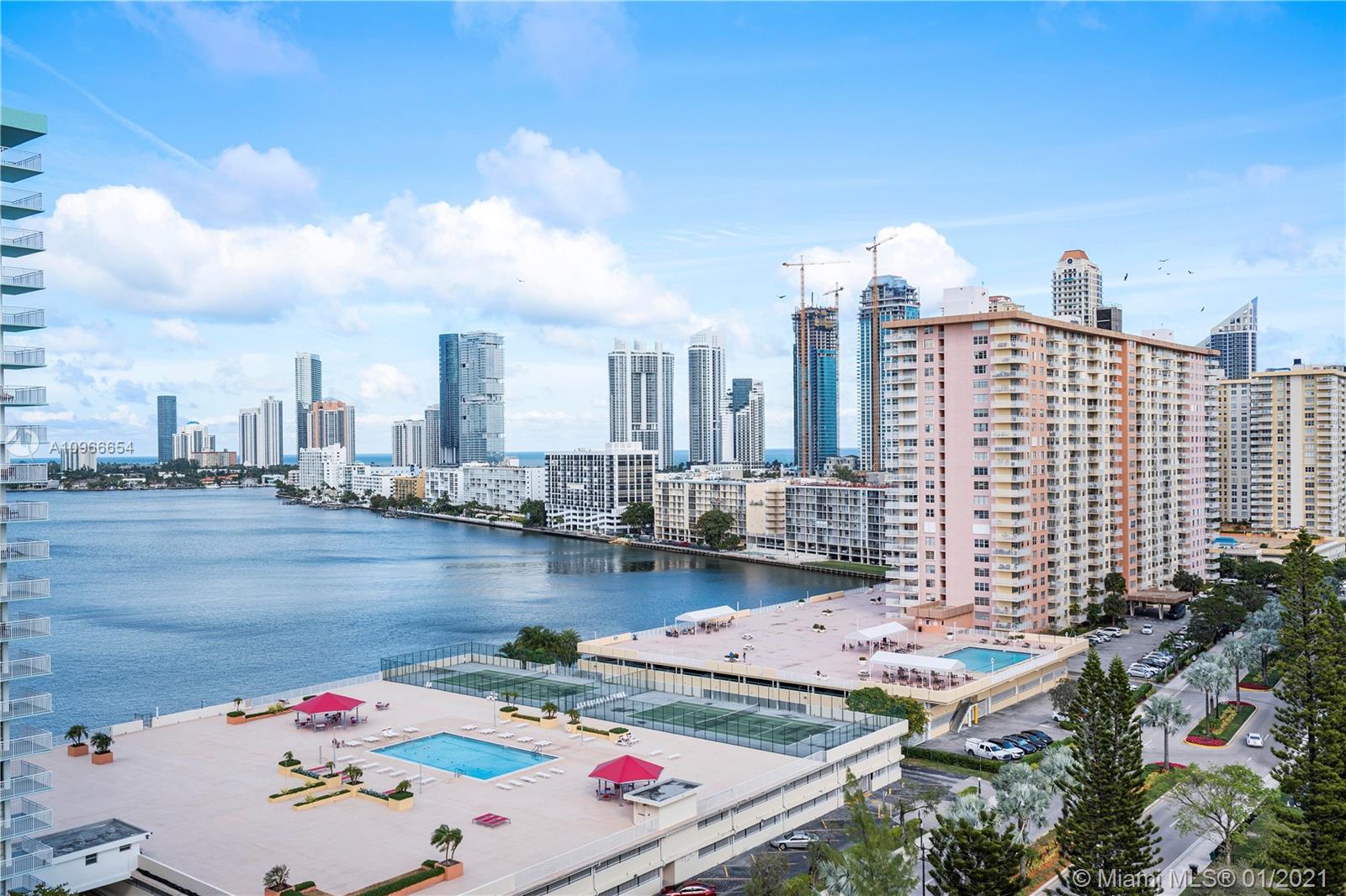 Beautiful 1/1.5 unit fully remodeled. Open kitchen. Renovated bathrooms. Spectacular view of the Ocean and wide city. Washer and dryer inside the unit. Located in the most luxury of Winston Towers, building offers many amenities such pool, gym, sauna, library, meeting room, game room, tennis court and many more. Walking distance to the Ocean. Apartment is actually larger than Tax Roll 1080 SqFt. Parking is deeded