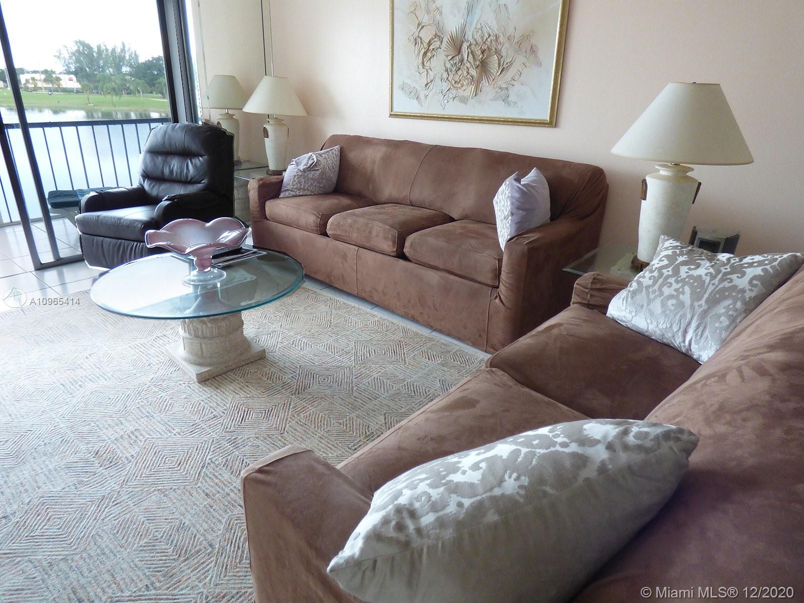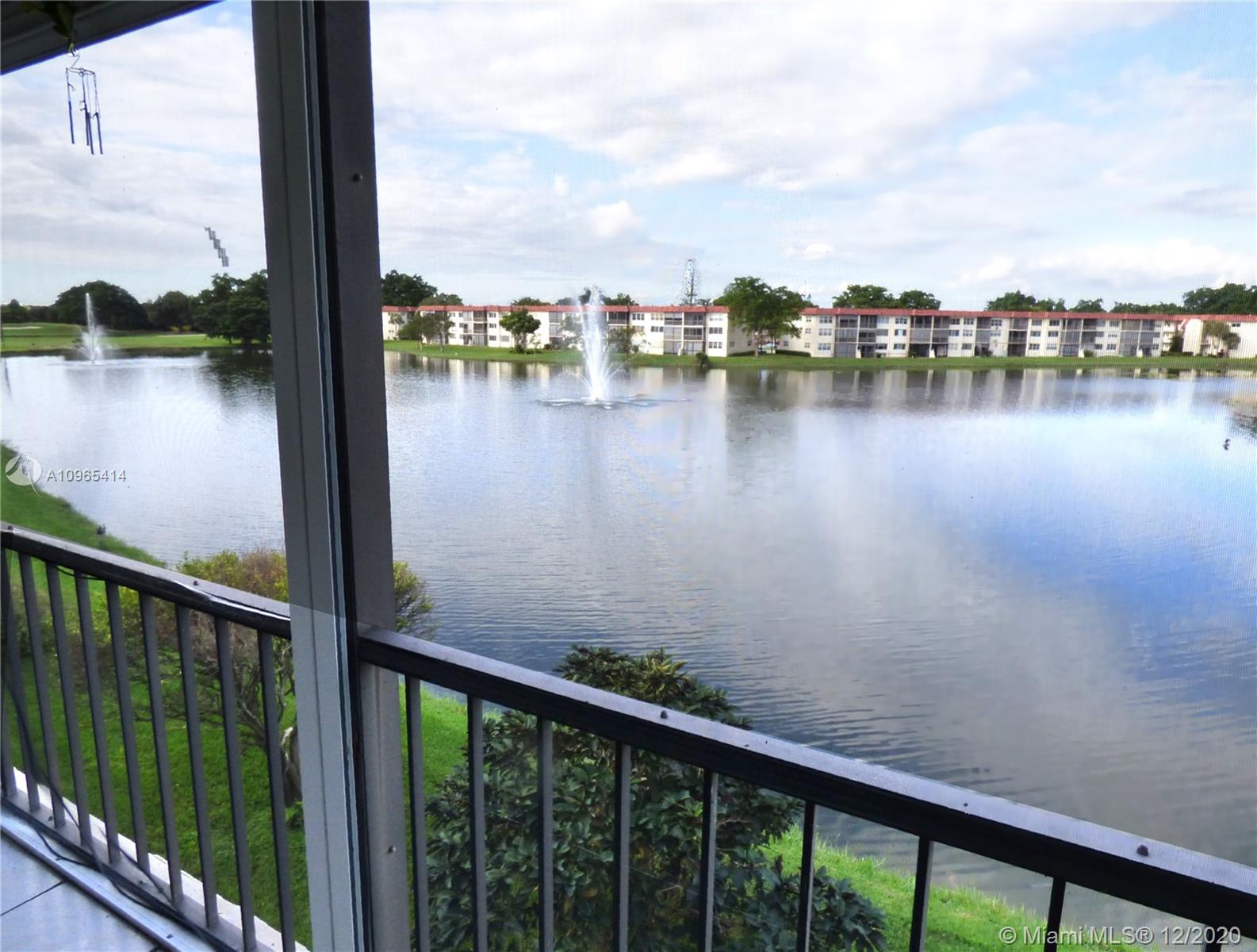 Upgraded top floor unit overlooking the large lake in Phase 2. Furniture negotiable. White tile floors throughout. Replaced kitchen and bathroom cabinets. Storm shutters on patio overlooking the large lake and fountain. Pool and rec area in front. One assigned parking space and plenty of guest parking available. Air conditioning has been replaced. Paid up rec lease and assumable service contract. Free golf , 14 tennis courts, 7 pools, theater, fitness center, restaurant , 24 hr security,. Assoc. represents housing for older persons authorized (HOPA).. *** IMPORTANT! See Broker Remarks below for occupancy qualifications.