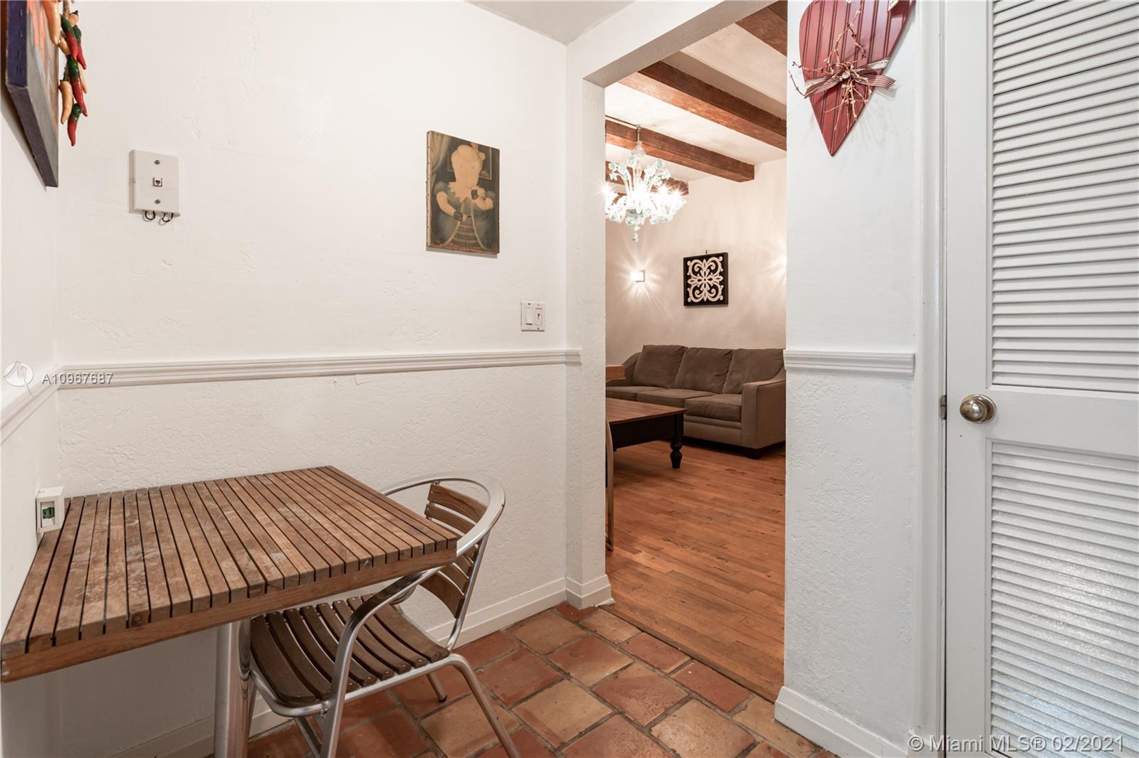 Charming art deco building located next to Lincoln Road and few blocks away to the ocean. This corner and spacious one bedroom features hardwood and terracotta floor, decorative fireplace, exposed wood beams, Murano chandelier, updated bathroom., washer and dryer. Direct access to the backyard from the kitchen which makes it easy to BBQ and enjoy outdoor space. The unit also has a brand new compressor.