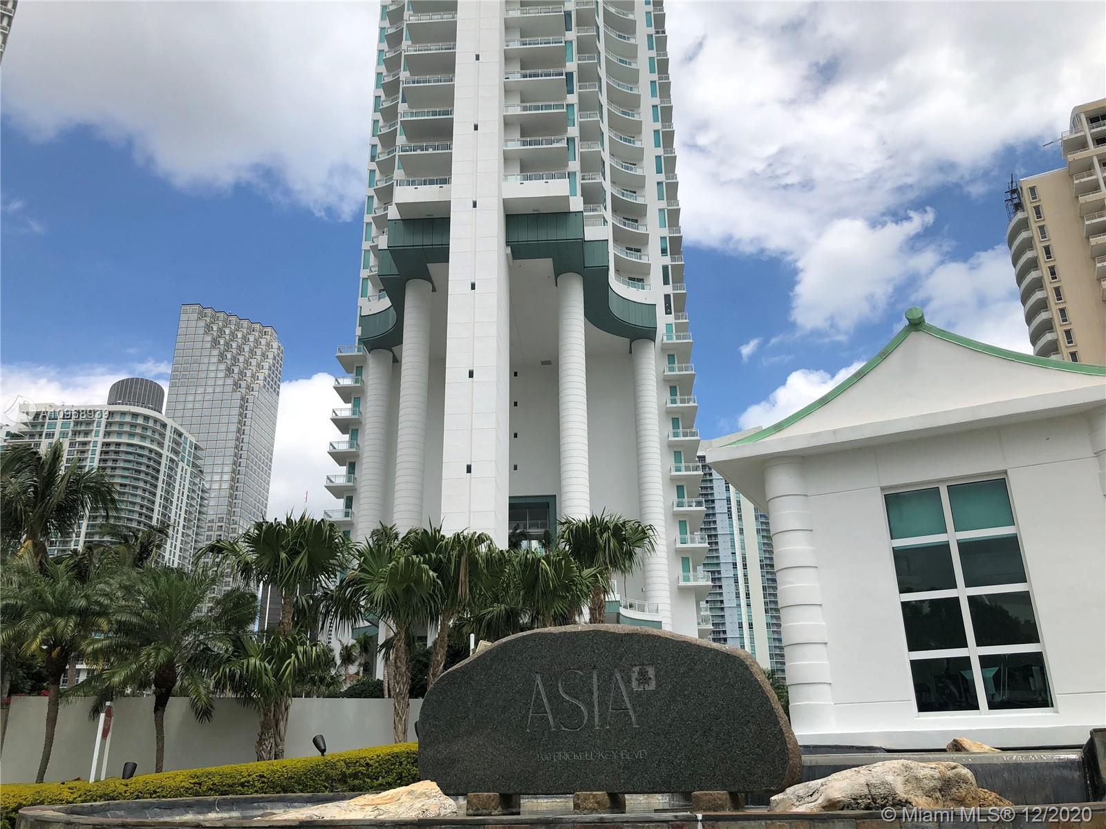 Beautiful bay and city views from this oversized 2/2.5 luxury condo. This unit features top of the line appliances, marble floors, two oversized bedrooms with own bathroom plus guest bath. Asia condo amenities include: Tennis courts,pool, racquetball courts, gym, sauna and much more. Only 123 units in this exclusive building with 24/7 security. Brickell key offers to its residents and visitors a marketplace, service shop, full service restaurants, parks, playground, 24 hr security. UNIT IS RENTED UNTIL FEBRUARY 2022.