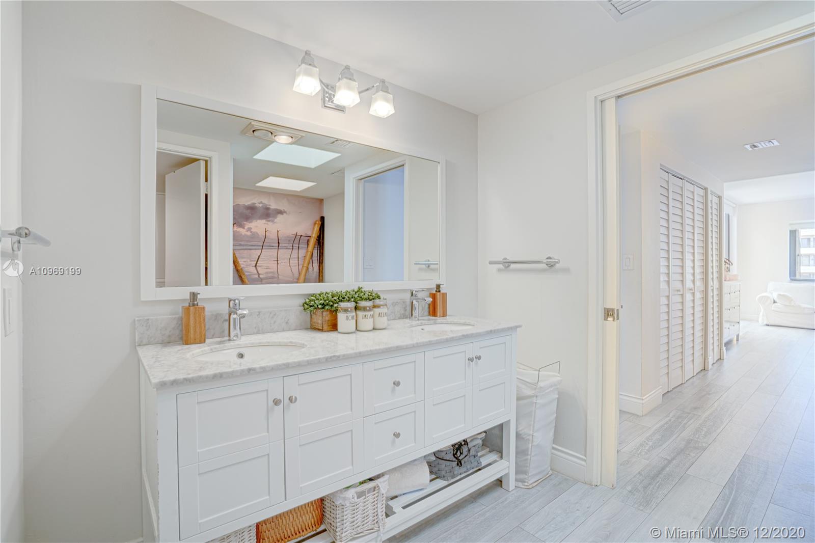 House in the sky! Beautiful & remodeled 3 bed/ 2 bath split floor-plan, 1,600 sf of living space + access to approx. 800 sf terrace w gorgeous sunset, sunrise and some ocean view! Lanai unit in the sky, 1 of only 2 units in the building with some ocean view. Island kitchen w access to the oversized terrace makes this residence perfect for families, entertaining, or anyone looking for private outdoor living space within condo living. 2 assigned parking + a storage unit. Key Colony is a 40 acre beach front & gated community w 12 tennis courts, several pools (including bch front), gym, playground, market w food delivery, salon/spa, & Bch front rest. (1 of only 4 buildings in Key Biscayne with bch front dining).