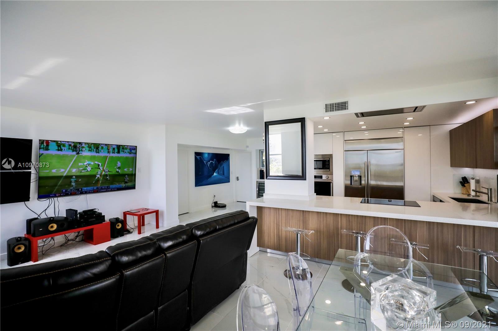 Amazing Bay views including the sunrise and sunset. This modern renovated 2Bed/2Bath/1HalfBath corner unit features a new kitchen with top of the line finishes and appliances, LED lighting in all the right places, new full bar with wine cooler, sink, and ice maker, opened up floor plan with new floors, new bathrooms, shutters for all windows, extra secure front door, dual central a/c units, large master suites, and large closets. The building's amenities include security at front gate, security is present 24/7, tennis courts, pool, children playground, gym, complimentary valet parking, and plenty of guest parking. The building is within minutes of Bay Harbor, Miami Beach, Grocery Stores, Fine Dining, Shopping, and More.