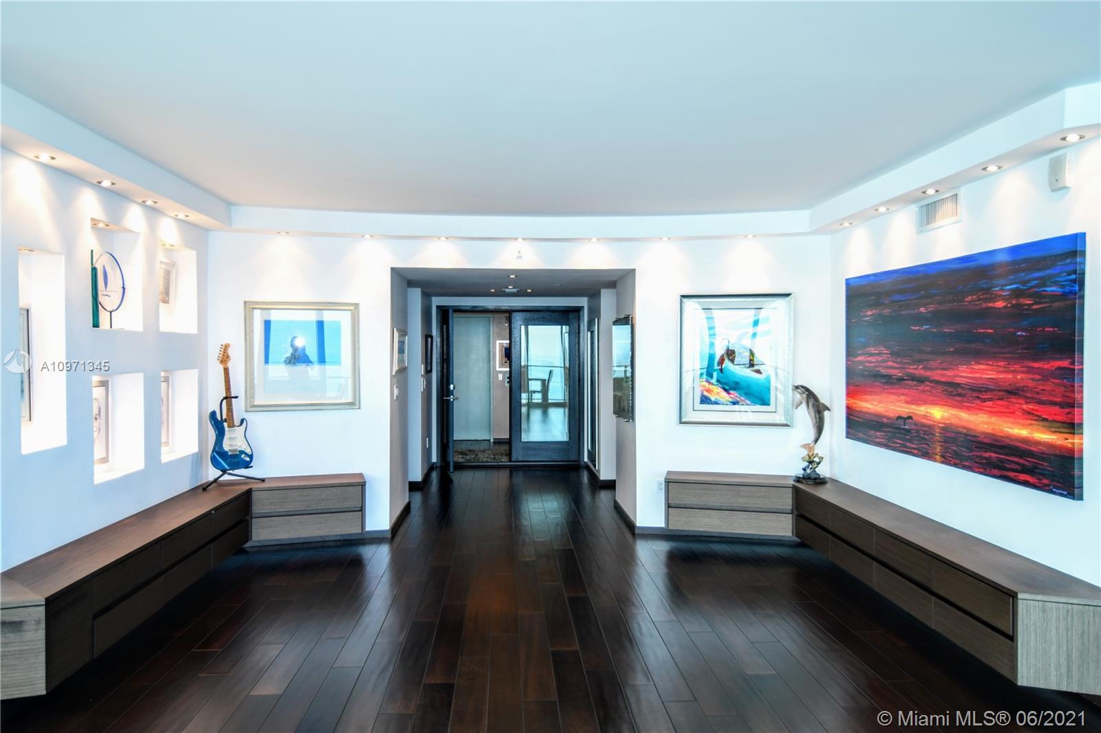 3 Bedrooms, 4.5 Bathrooms. Three oceanfront balconies offer sweeping direct ocean views. High end appliances and finishes. Private elevator opens to panoramic views of the ocean. Motorized shades, Sonos Sound System on all bedrooms and living space. Great size bedrooms. Beautiful Master Suite with double vanity in Bathroom, large Jacuzzi Style Tub and Separate Glass Rain-Shower. Walk-In closets on all Bedrooms with built in shelving. A 4th Bedroom can easily be created. Building includes resort style pool and spa, state of the art fitness center, tennis court, private theatre, outdoor summer kitchens, valet parking, beach and pool towel and chair service, club and billiard rooms all which are professionally maintained and recently renovated. Seller Financing Might be available.