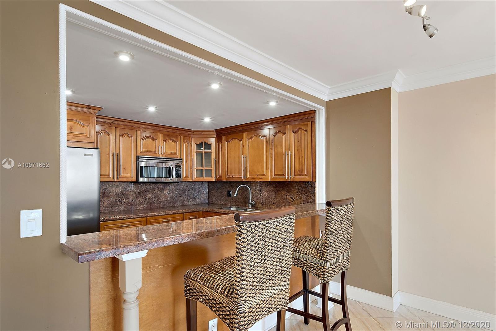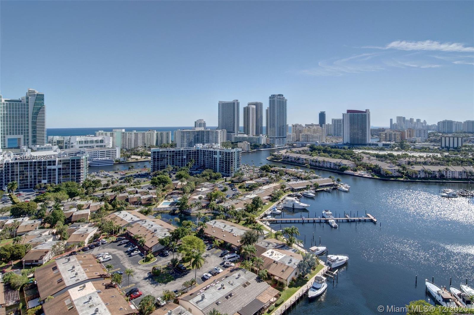 VIEWS! VIEWS! VIEWS! Nestled in the heart of Three Islands gated community, this bright and spacious gut renovated 1 Bed, 1.5 Bath condo in the sky boasts unparalleled panoramic ocean and intracoastal views.Eastern exposure allows you to enjoy your mornings overlooking breathtaking sunrises over the ocean. Granite countertops in Kitchen and Bathrooms, stainless steel appliances with solid wood cabinetry and a kitchen bar top for easy entertaining. Crown and base moldings throughout the unit with tiled floors including the balcony. Abundant storage including a Custom california walk-in closet The Olympus offers resort style amenities. Minutes to the Ocean, Shopping, Restaurants, Gulfstream Park & Casino and Aventura Mall. Storage included. Investors welcome - Rentals are ok!