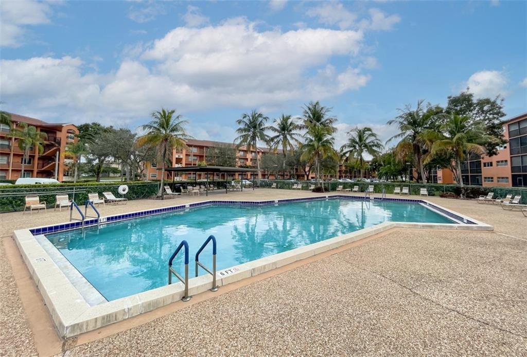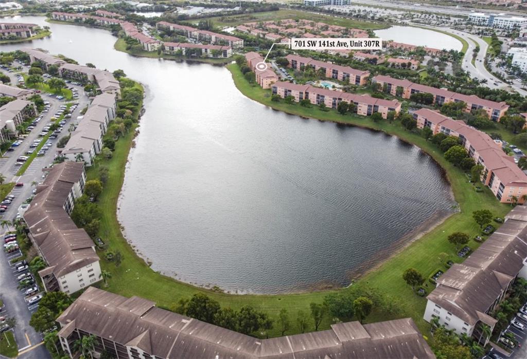 Perfectly placed Century Village home with gorgeous lake views! Offering easy access to the community pool, health club, and clubhouse and only steps from the elevator this third central location has it all. The light and bright interior features updated laminate wood flooring that perfectly complements any decor and makes daily cleanup a breeze. Enjoy serene lake views from your screened balcony offering the ideal outdoor expansion to the living room.