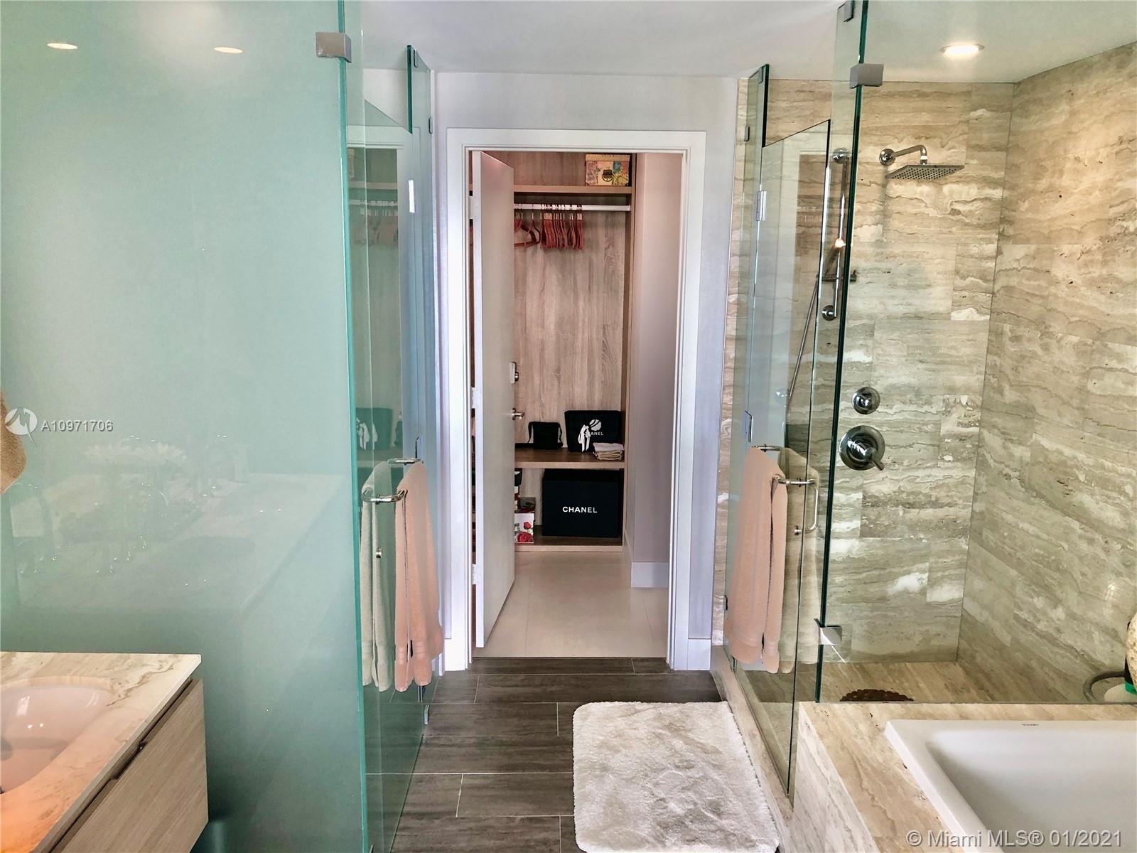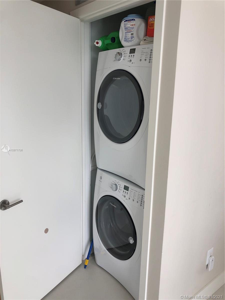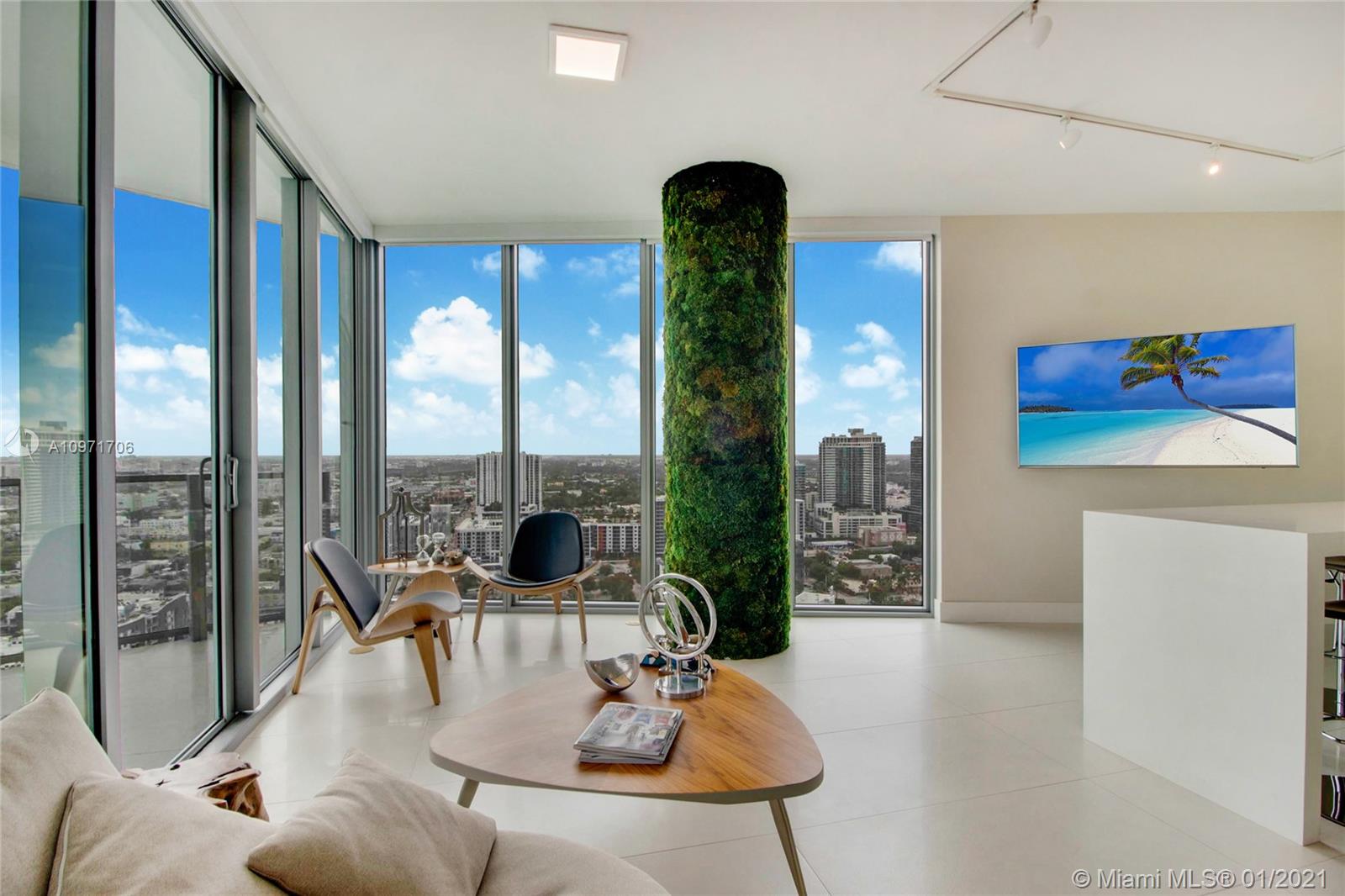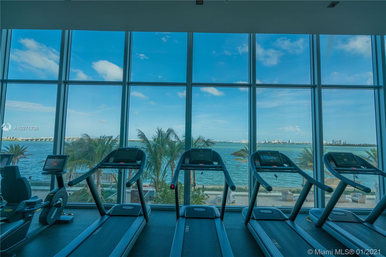 Beautiful upgraded 1 bed + den (enclosed with murphy bed) and 2 baths at luxury building. Professionally decorated by Brazilian designer Myrna Porcaro. Upgrades include kitchen island and wine fridge, wallpaper, vertical garden pillar, murphy bed, & electric shades. Tile floors throughout. Beautiful VIEW OF BISCAYNE BAY, Edgewater & Downtown Skyline, and sunset view. Private Elevator with private foyer entrance; Snaidero Kitchen with Miele appliances; 10 ft ceilings with floor to ceiling glass windows; spacious balcony. Amazing AMENITIES with a Beach Club, elevated sand/beach area, bayfront pool, sauna & steam room, 2 massage rooms, tennis & basketball courts, beach volleyball court, state of the art gym, 6th floor with 2nd pool, bbq area, 2 party rooms. Assigned parking (#233)
