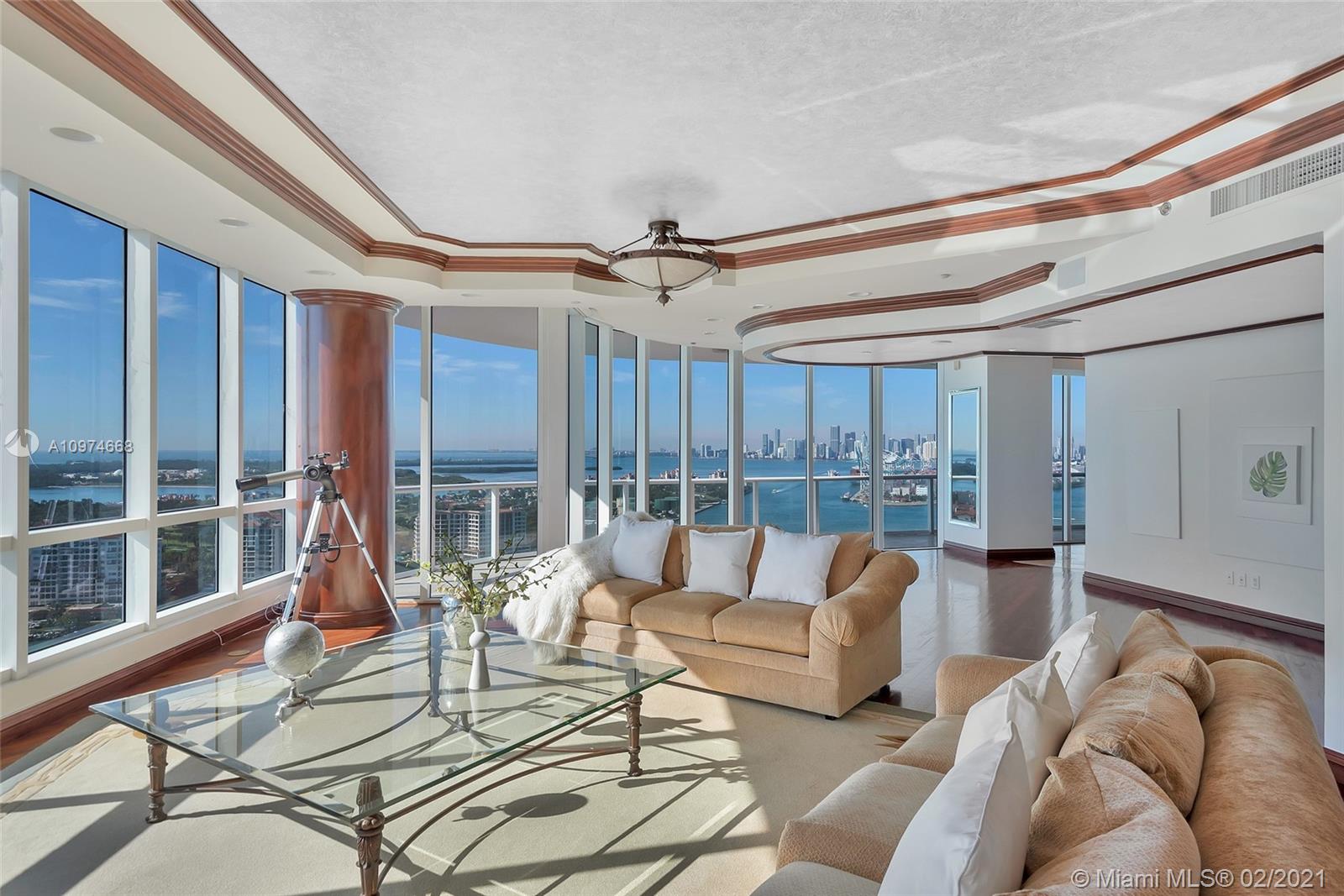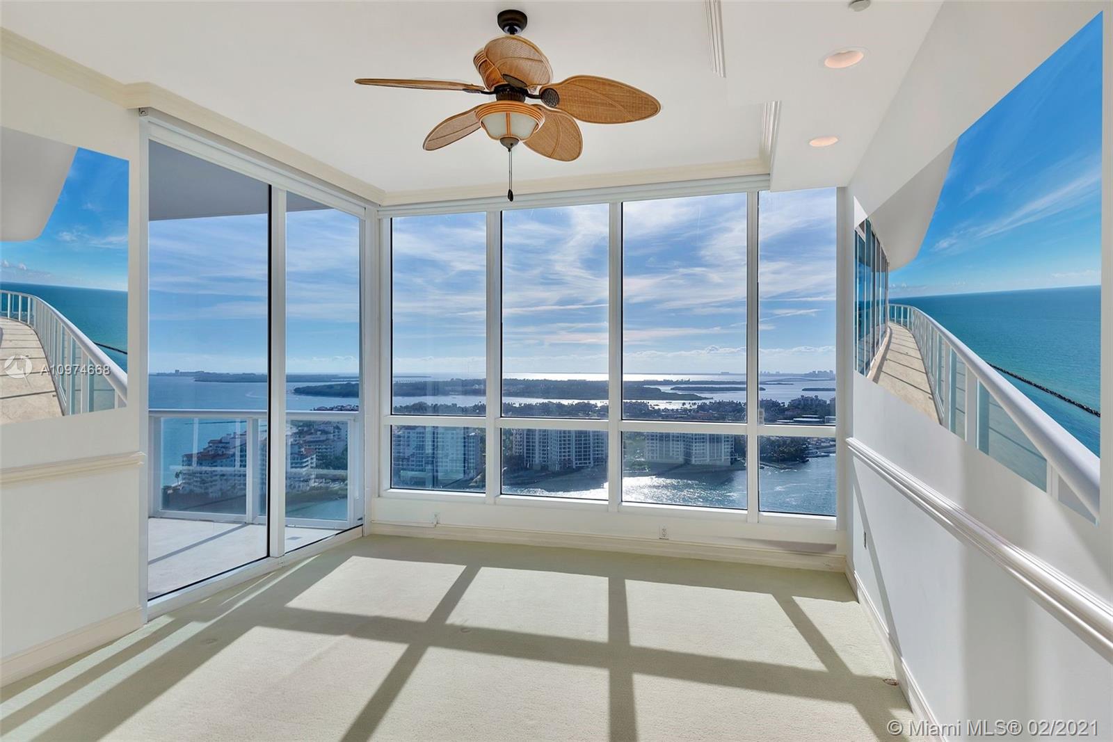 Perfectly situated on the 28th floor of the prestigious Continuum South Tower, offering almost 5000sq feet of sprawling luxury, quality craftsmanship and 300 degree sweeping unobstructed views. Sitting in the vast living room one marvels at sparkling beach sunrises and tequila colored sunsets over layered views of Fisher Island, yachts cruise ships and the distant Miami City skyline. With curved balconies accessible by all rooms, and space to reconfigure your style allowing for a personal gym or office this is where all Continuum owners aspire to live in the building’s most desirable line. It just doesn’t get any better. As one steps off the elevator into this rarely available home there’s no denying it has the “Wow” factor.