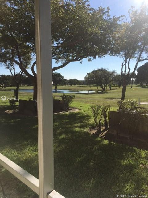 THIS CHARMING 1BR 1.5BA APARTMENT IS CONVENIENTLY LOCATED ON FIRST FLOOR OVERLOOKING THE GOLF & LAGOON WITH MAGNIFICENT PANORAMIC VIEWS. IT INCLUDES CERAMIC FLOORS, ROLL DOWN SHUTTERS IN PORCH AREA AND HAS PLENTY OF PARKING. The village is guard gated & patrolled with serene walking trails & relaxing outside greenery. You'll find golf, tennis, pools, fitness centers, & complimentary transportation available. The apartment is conveniently located next to Pembroke Gardens Shops and Pembroke Lakes Mall. It is a verified HOPA 55+ community.