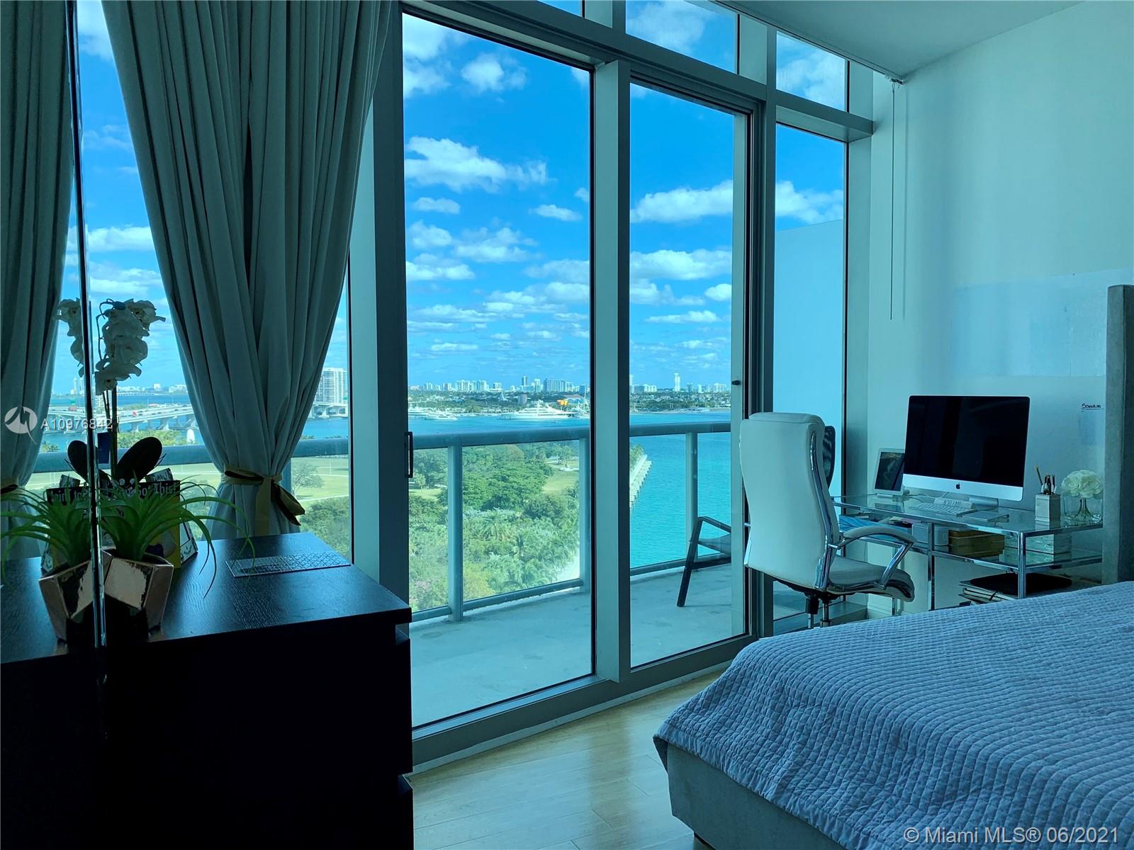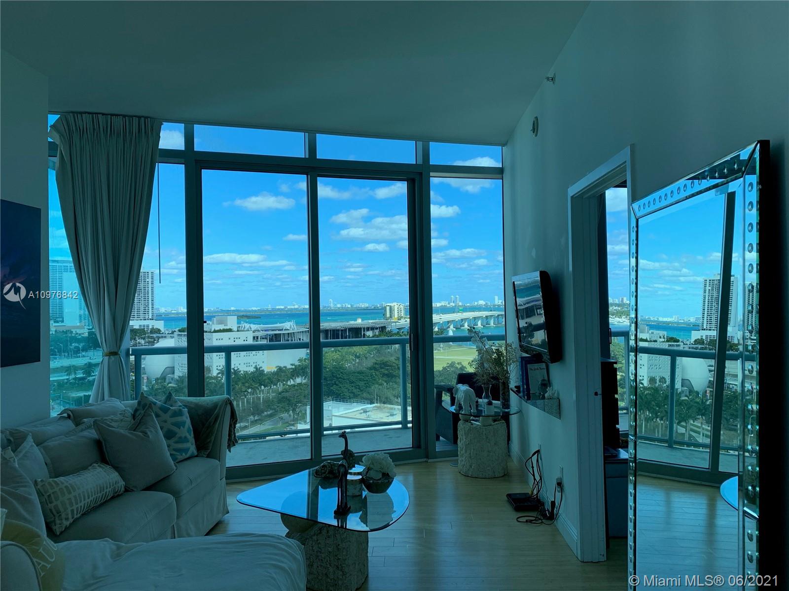 Extra high ceilings corner condo delivering stunning sunrise views and partial sunsets. The floor to ceiling windows wrap around the apartment, filling the space with natural light throughout. This is a great 2/2 split floor plan offering each room in its own wing and both with its own walk-in closet. With only 4 apartments per floor, this residence offers privacy & delivers with great building amenities such as two pools, gym, jacuzzi, volleyball court and more. Also includes a 5x5 storage.