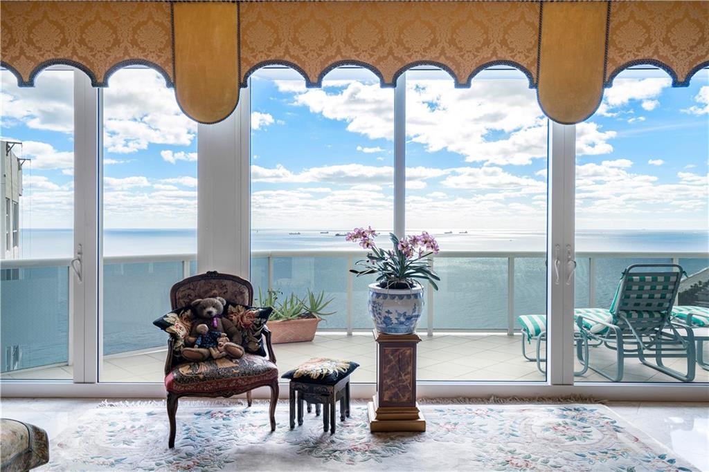 Southeast Ocean Grand Penthouse at L'Hermitage. A Regal Palace in the Sky! Largest available on highest floor of complex. Over 7,000 square feet of living space w/ 6 separate balconies. All encompassing 270 degrees of breathtaking views for sunrises, sunsets, city views, coastline views, intercoastal views. 11' ceilings, private elevators, recently upgraded HIGH IMPACT windows and doors throughout. 6 bedrooms, 6.5 baths, 2 kitchens, formal office, extra storage, separate entrances for large families that want their own living areas. 3 Prime parking spaces included! This one of kind magnificent unit is a must see. L'Hermitage is over 10+acres resort style living with a 2.5 acre pool deck, café, pools, spas, saunas, steam, attended beach, pets ok