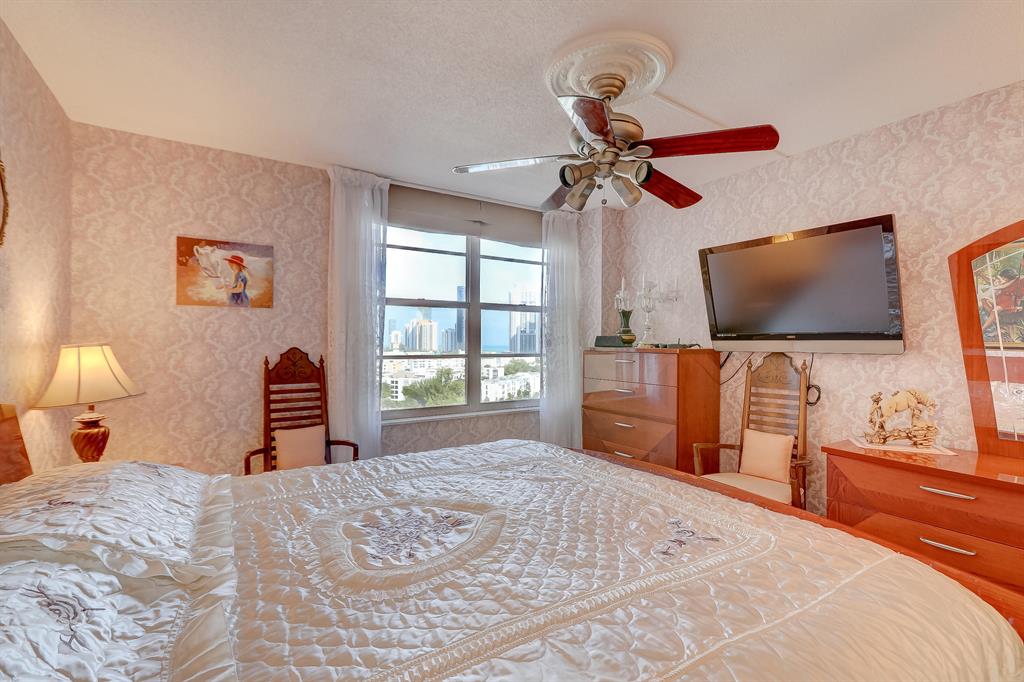 Enjoy ocean and city views from your 15th floor apartment in the heart of Sunny Isles Beach. Panoramic views from 25 feet wide balcony. Large windows in every room facing the sunny side. Spacious and bright 2 bedrooms 2 bathrooms with upgraded kitchen and dining room with large format tile floors throughout. Winston Towers ''400'' is the hottest building on the block after finishing complete renovations. New balconies, new hallways, all new elevators, new pool and garage. All assessments have been paid in full. Building amenities include 24 hour security, pool, gym, billiard room & library. One of the lowest maintenance fees in the city includes hot/cold water, cable, internet and appliances / AC repair services. 5 minute walk to the beach, restaurants, shopping centers, ocean front parks.