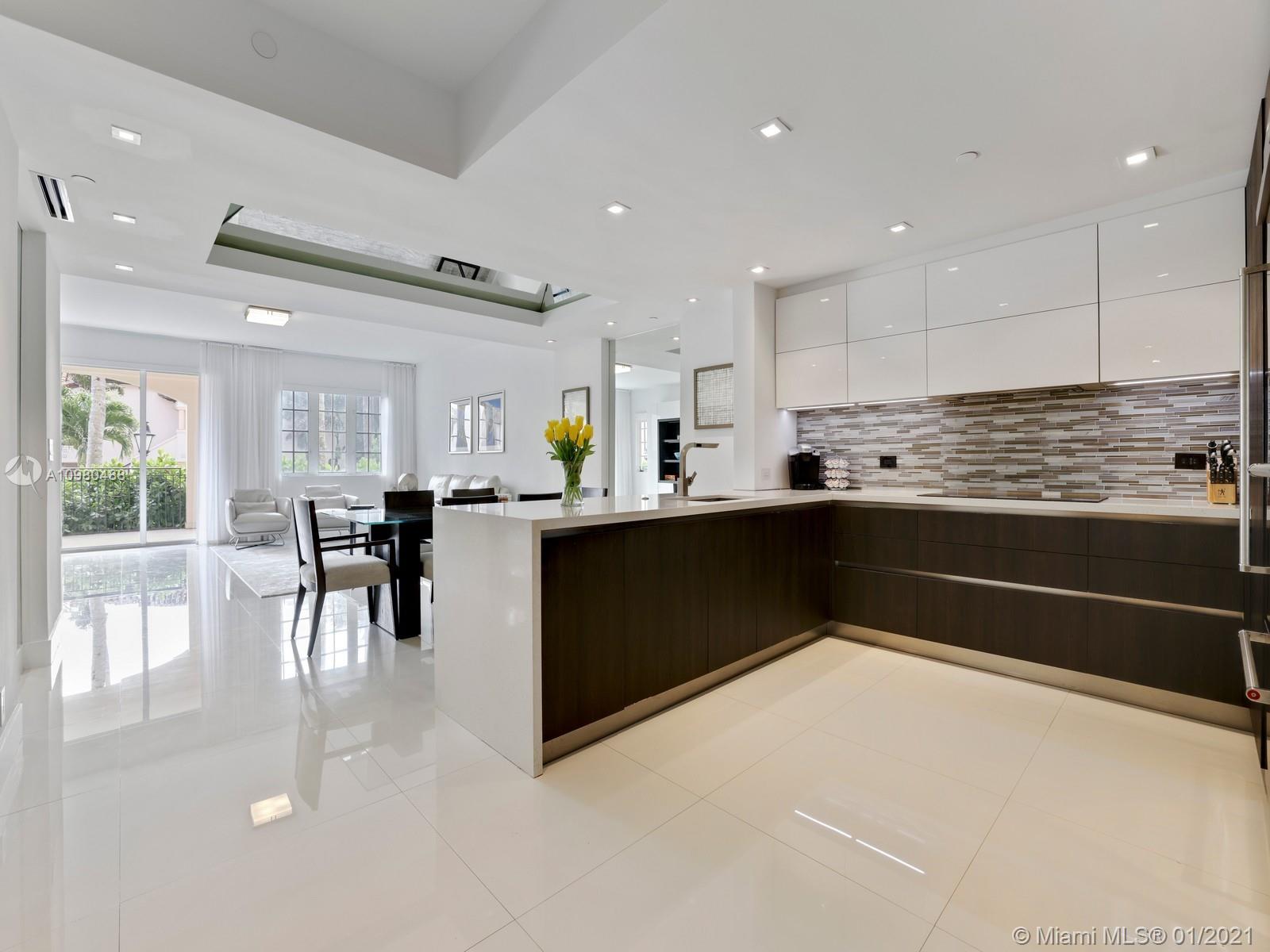 Modern renovation offered fully furnished w/ brand new contemporary décor. White, bright open floor plan w/ chic Italian kitchen and master bath. Desirable ground floor location next to the Beach Club, Spa, tennis courts and members’ beach. The ideal floor plan in this pied-a-mer for personal occupancy and short or long term rental. Boasts 1 garage parking space, storage room & golf cart. Perfect move-in condition - start enjoying the lifestyle of Fisher Island immediately.
