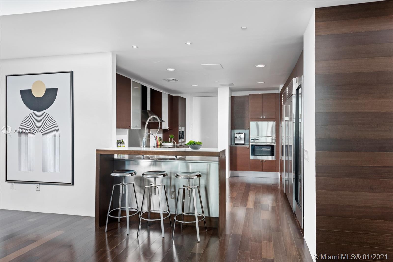 The Bath Club is a prestigious residential building located directly along the Atlantic Ocean on Miami Beach’s famed Millionaire’s Row. Unit 1502 is a 3-bed/3.5-bath condo with sleek wood flooring throughout and a private elevator. The kitchen is complete with Sub-Zero and Miele appliances as well as a built-in wine cooler. Ocean, city & bay views can be seen from the expansive balcony, making it the perfect entertainment space. Separate his and hers master bathrooms meet in the shower. The home comes with a Savant Smart Home system. The Bath Club amenities include full service beach club, a pool with lap lanes, tennis courts, a health club with a spa menu, gorgeous walking gardens, full-service concierge, valet, 24-hour security and fine dining.