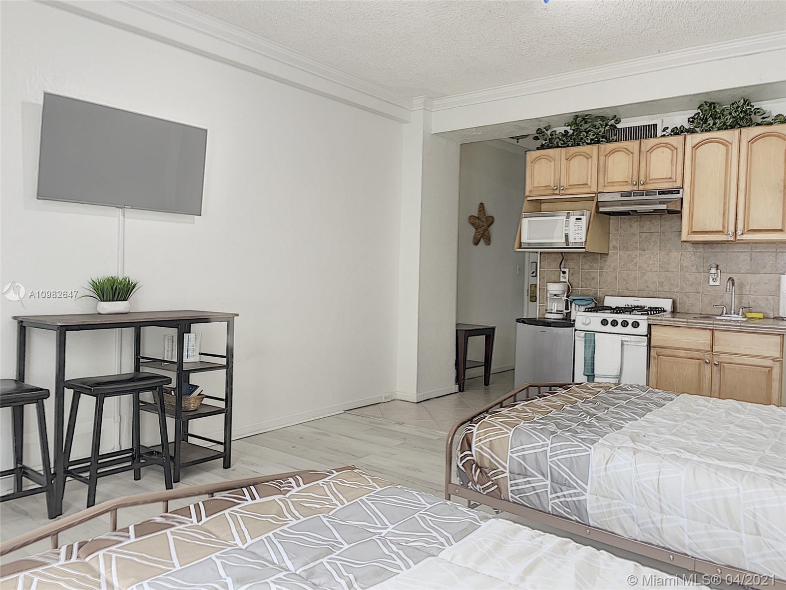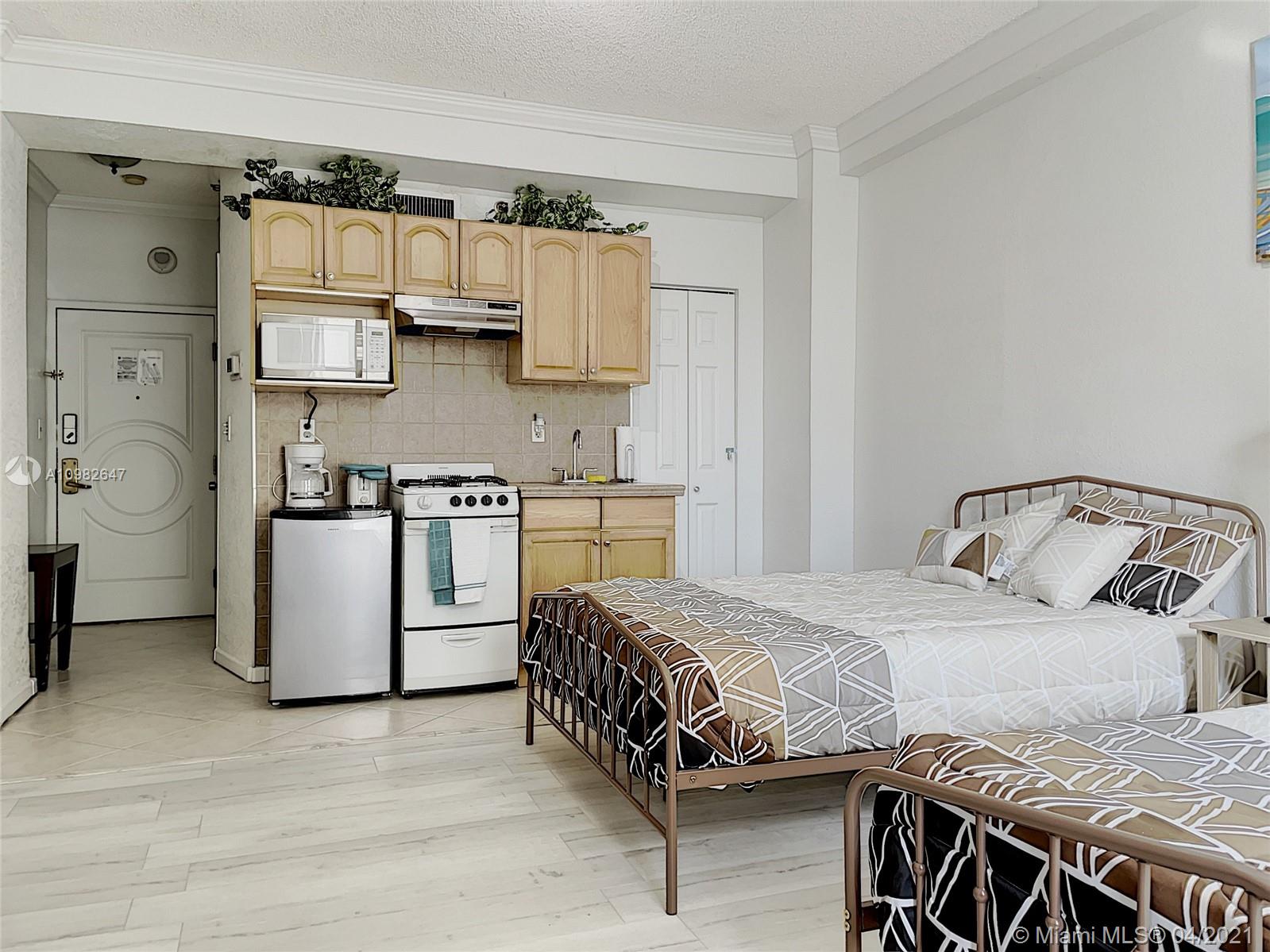 Perfect Turnkey investment property / weekend getaway. Most affordable oceanfront condo-hotel along Hollywood Beach. Spacious, light and bright studio. Fully furnished and equipped, flat-screen TV, cable + Wi-Fi, updated kitchen & bath. No rental restrictions. Can be rented via AirBnB or the hotel program. HOA includes Electricity, Water, Cable, Local Phone Line, Internet, Coin Laundry & 1 Parking Space in Parking Garage. Resort style amenities include a beautiful pool overlooking Hollywood Boardwalk, direct Beach access, Outdoor Restaurant, Bar & Gift shop. Minutes to downtown Hollywood, Hard Rock Guitar Hotel & Casino, Gulf-Stream Casino, Airport, Restaurants, Shopping & much more! **CASH ONLY**
