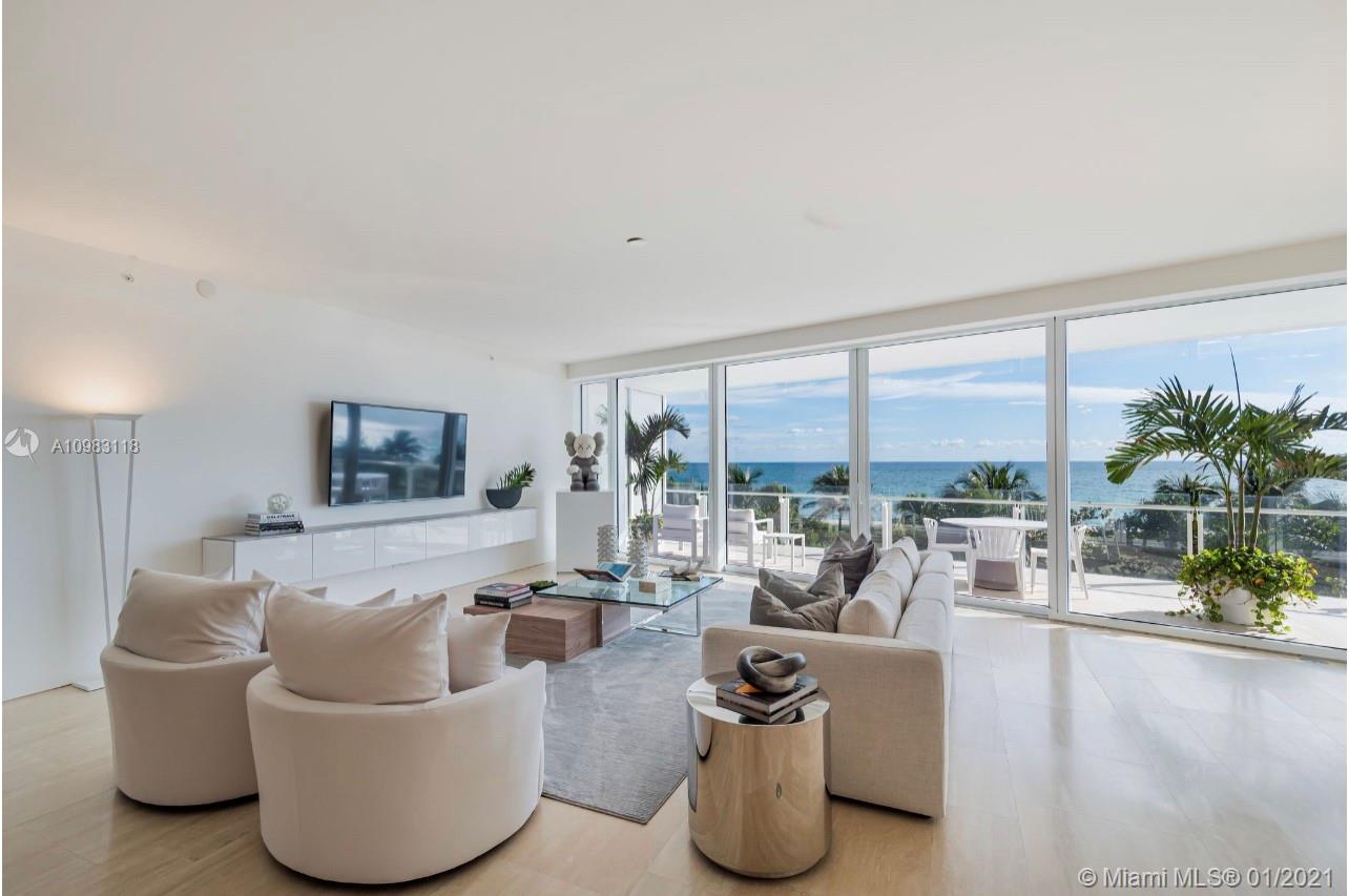 Enjoy FOUR SEASONS LIVING from this furnished and expansive flow through residence featuring 4 Bedrooms + 5.5 Bathrooms with Direct Ocean Views. Interior Features: Travertine flooring, Richard Meier-designed kitchens by Boffi, SubZero & Miele appliances, gas cooktop, custom closets, millwork & cabinetry throughout designed by famed interior designer & more. Enjoy the ART OF HOSPITALITY by Four Seasons with à-la-carte services including 24-hr concierge, in-room dining, housekeeping, & more. Property: 4 pools & beach (fully serviced), residents-only fitness centers, 2 restaurants including Thomas Keller restaurant, Four Seasons spa, 2 shops, & more.