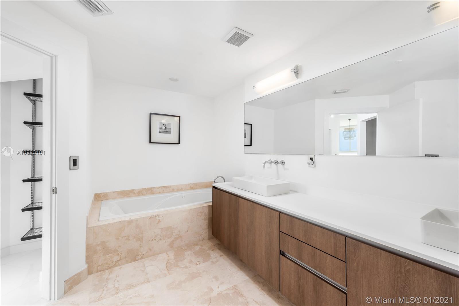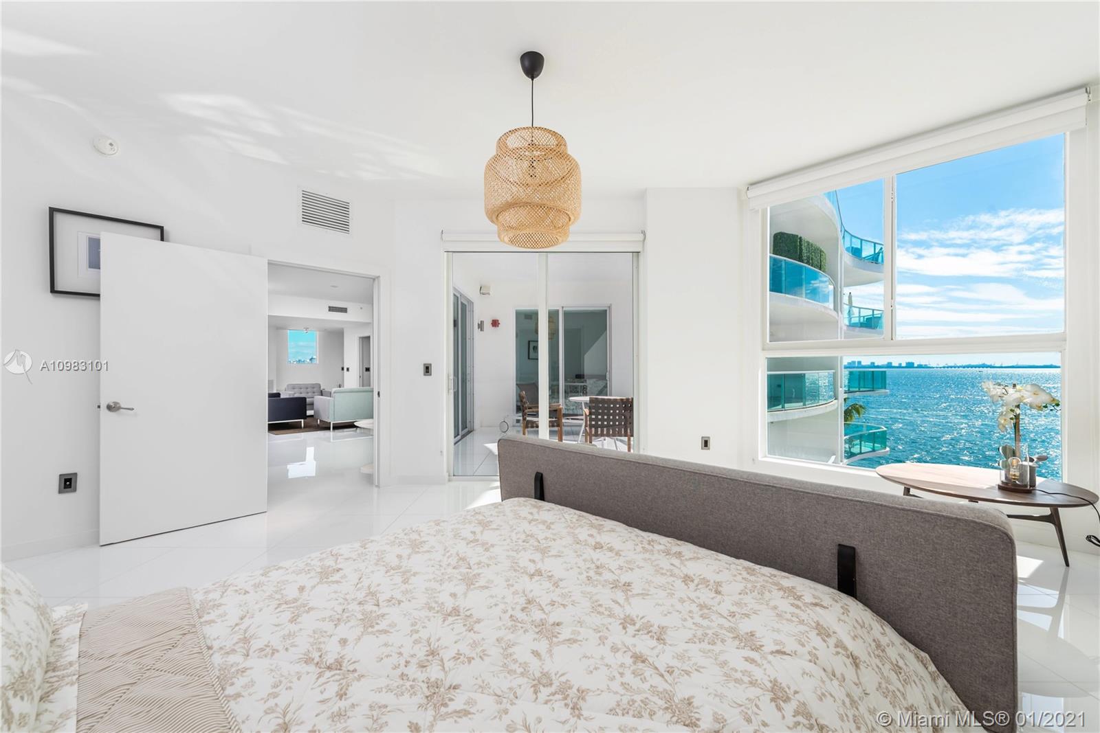Live life on the water in this boutique wide bayfront building which offers stunning unobstructed views of Biscayne Bay and the Downtown Miami skyline. After a stroll through the fabulous open air lobby, enjoy a morning swim & workout in the recently upgraded waterfront pool, spa & gym. Your very own private elevator vestibule opens directly to a bright open split floor plan with a large living room/dining room. The impressive upgraded eat-in kitchen boasts marble countertops, Wolf sub-zero appliances and wine cooler which is ideal for entertaining while enjoying gorgeous Miami sunset views. You will appreciate that everything in this unit is brand-new. The two spacious master suites feature spectacular bay views, ensuite bathrooms and custom walk-in closets.