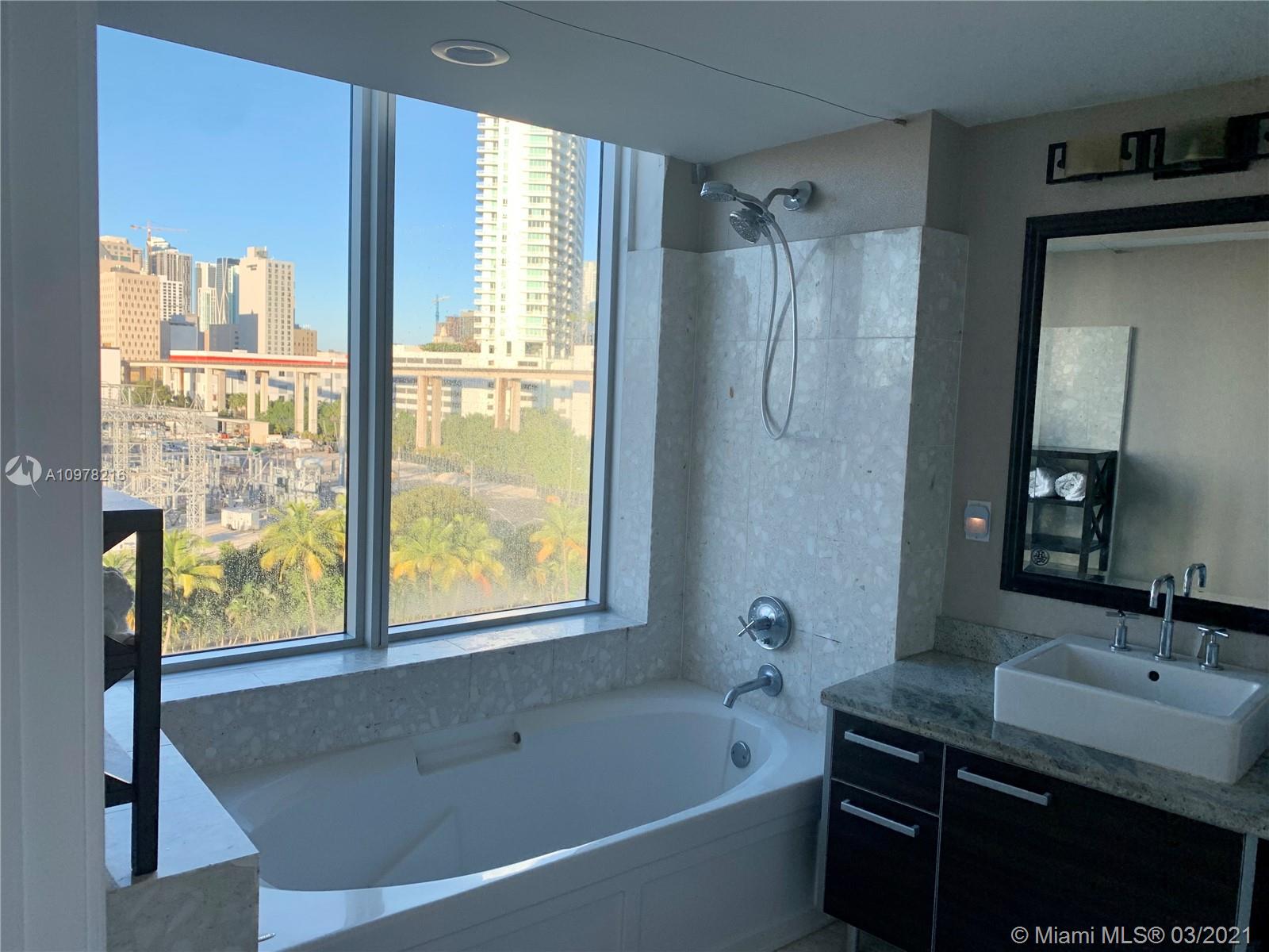 Welcome home to Latitude on the River. Designer decorated spacious two bedroom and 2/5 bathrooms with expansive skyline view of the city and Biscayne Bay. Only 3 units on the floor....One of the biggest layout of the building. Parking space is also at 7 floor (very convenient). No need to use elevators if u want, which is a big deal today...Two Huge walk-in closet and master suite. Comes complete with one assigned parking space. One block away from City Center and Mary Brickell Village and Publix.Full service building with pool, movie theatre, fitness center, concierge and valet.
