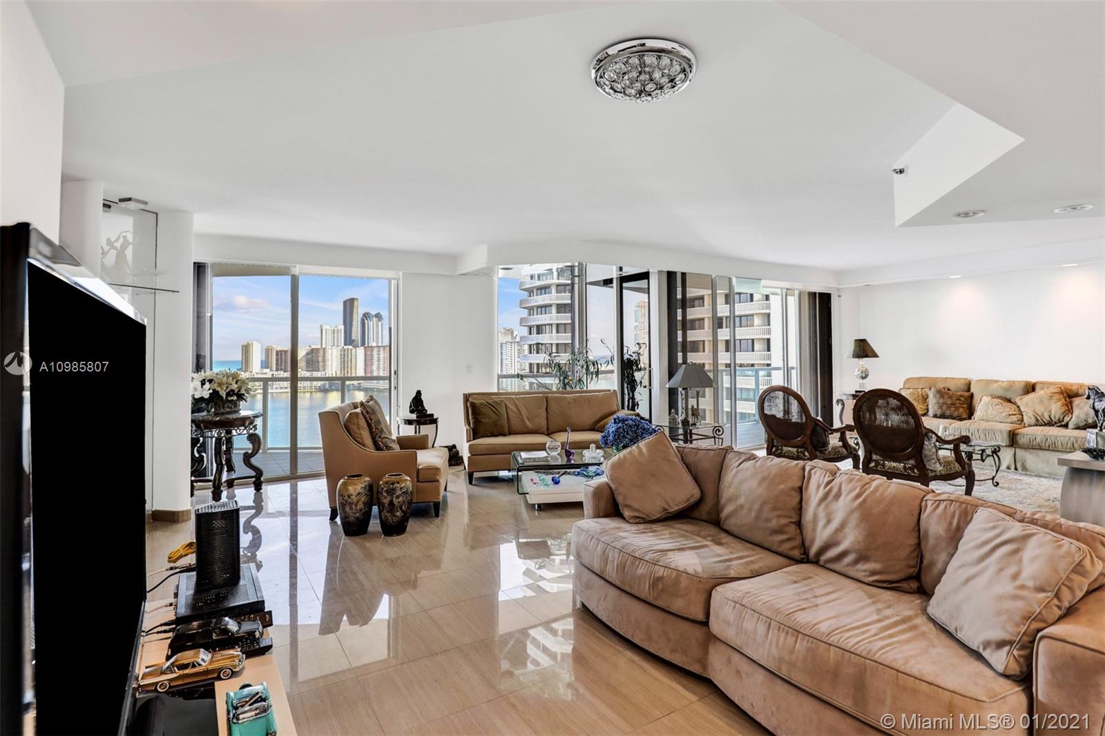 VERY UNIQUE 2 STORY UNIT ON 17TH FLR W/ AMAZING DIRECT OCEAN & INTRACOASTAL VIEWS FROM EVERY ROOM. LIVING AREA UPSTAIRS. BEDROOMS DOWNSTAIRS. MARBLE FLOORS UPSTAIRS, UPGRADED KITCHEN, GRANITE COUNTERS, S/S APPLIANCES. STAIRCASE & PRIVATE ELEVATOR LEADS TO LARGE MASTER SUITE,+2 ADD BEDRMS AND BATHS. BLDG AMENITIES INCL NEW GYM, NEW HALLWAYS & LOBBY. LIVE IN THE PRESTIGIOUS WILLIAMS ISLAND WITH FULL AMENITIES: 3 RESTAURANTS, 16 TENNIS COURTS, 27,000 SQ.FT. SPA, MARINA, WALK/JOG TRAIL, PLAYGROUND, COURTESY BUS, WALK TO WILLIAMS ISLAND SYNAGOGUE, AND SO MUCH MORE…