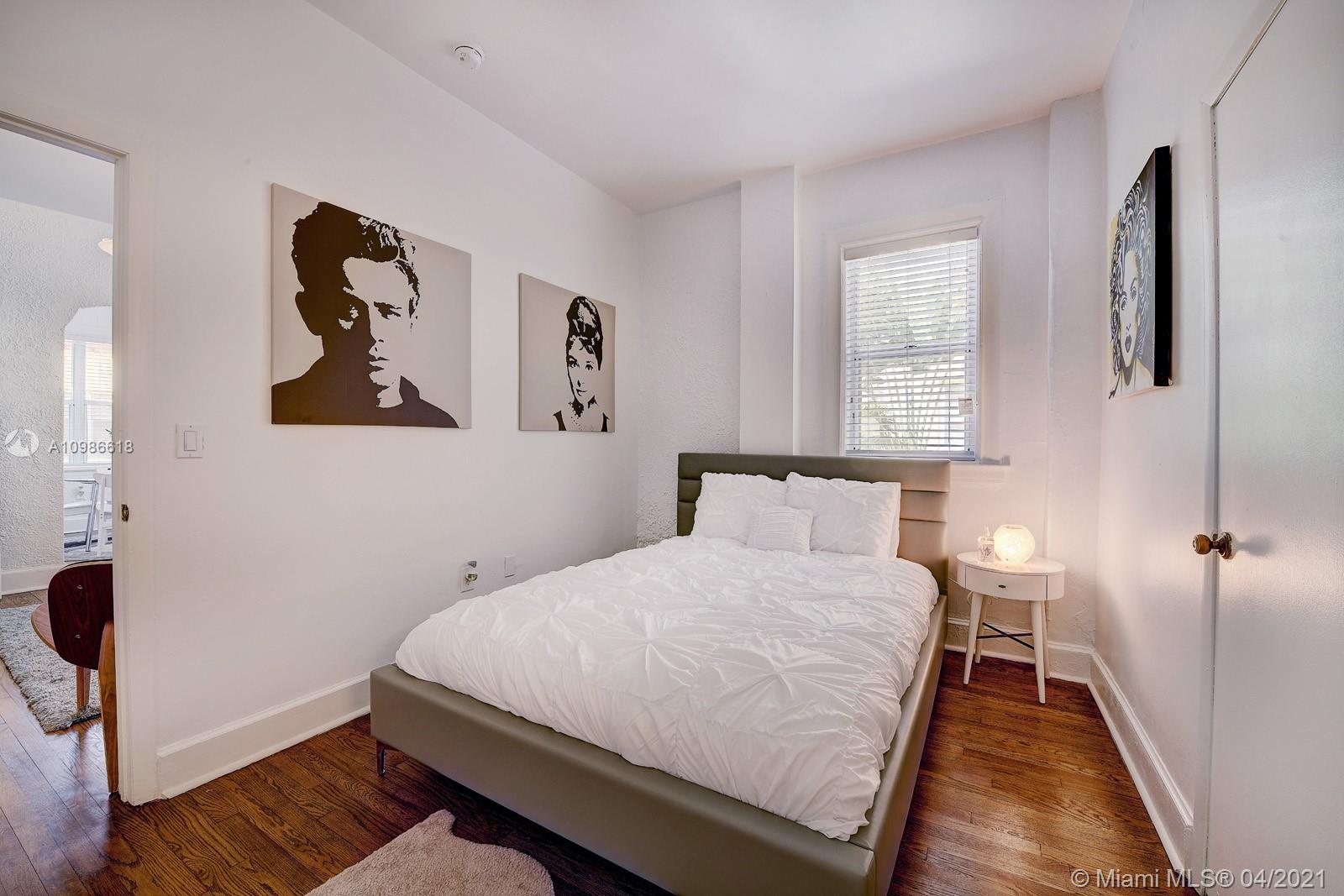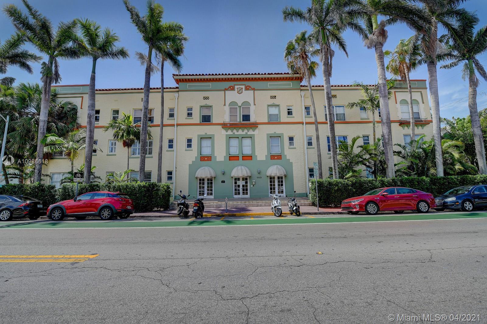 Stunning Iconic Art Deco Mediterranean Classic building. Extra Large Fully Furnished with Style & Taste. One Bed One Bath. Separate Living & Dining areas, Corner Unit multiple windows full of natural light over looking internal courtyard. Updated kitchen & bathroom, 2 closets in the Bedroom. Original wood floors central AC. Covered Bike storage in the building.Next to Lincoln Road and a short walk to the Beach & the Bay. Close to Flamingo Park. Easy street parking with residential permit. Rented till 5/31/21