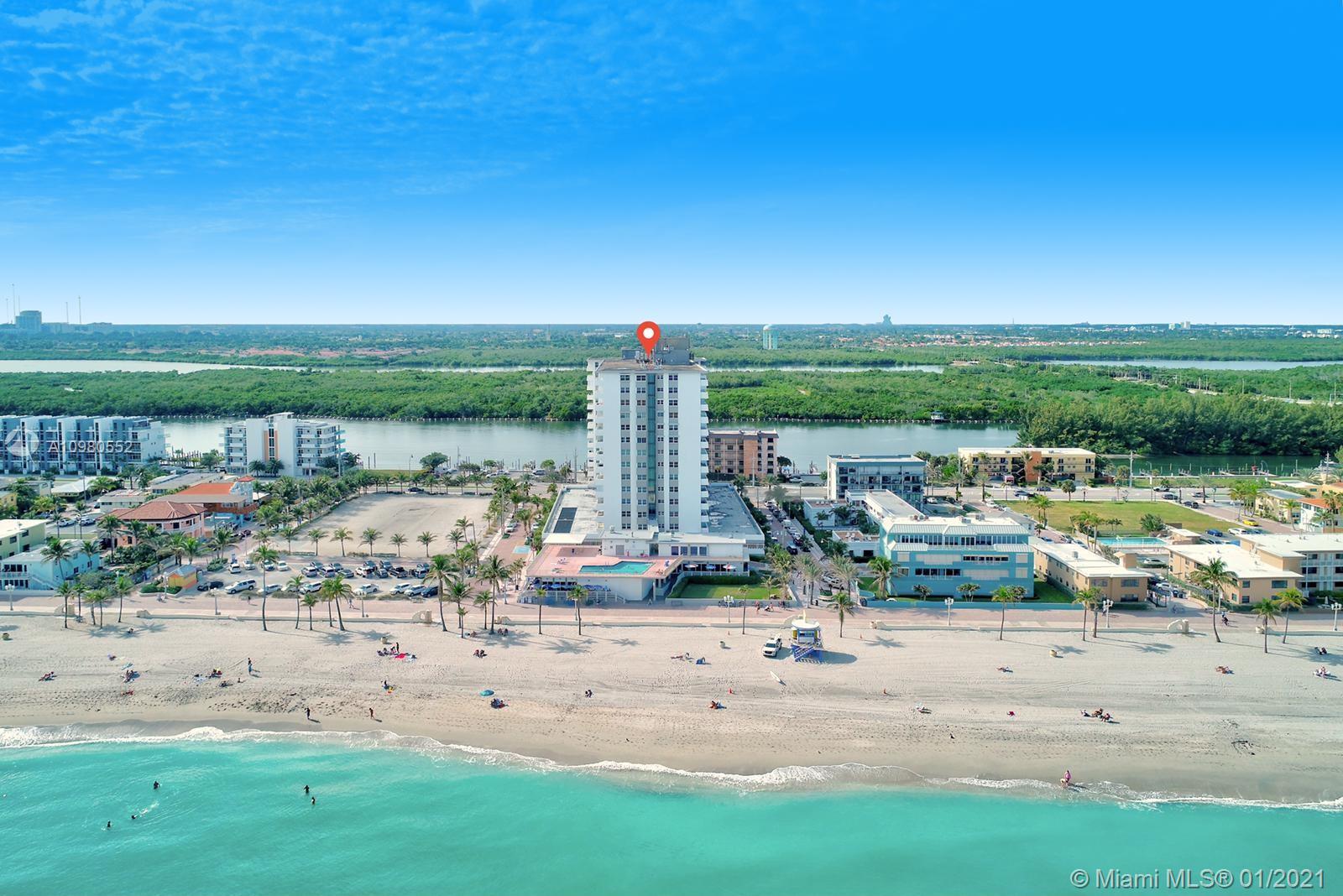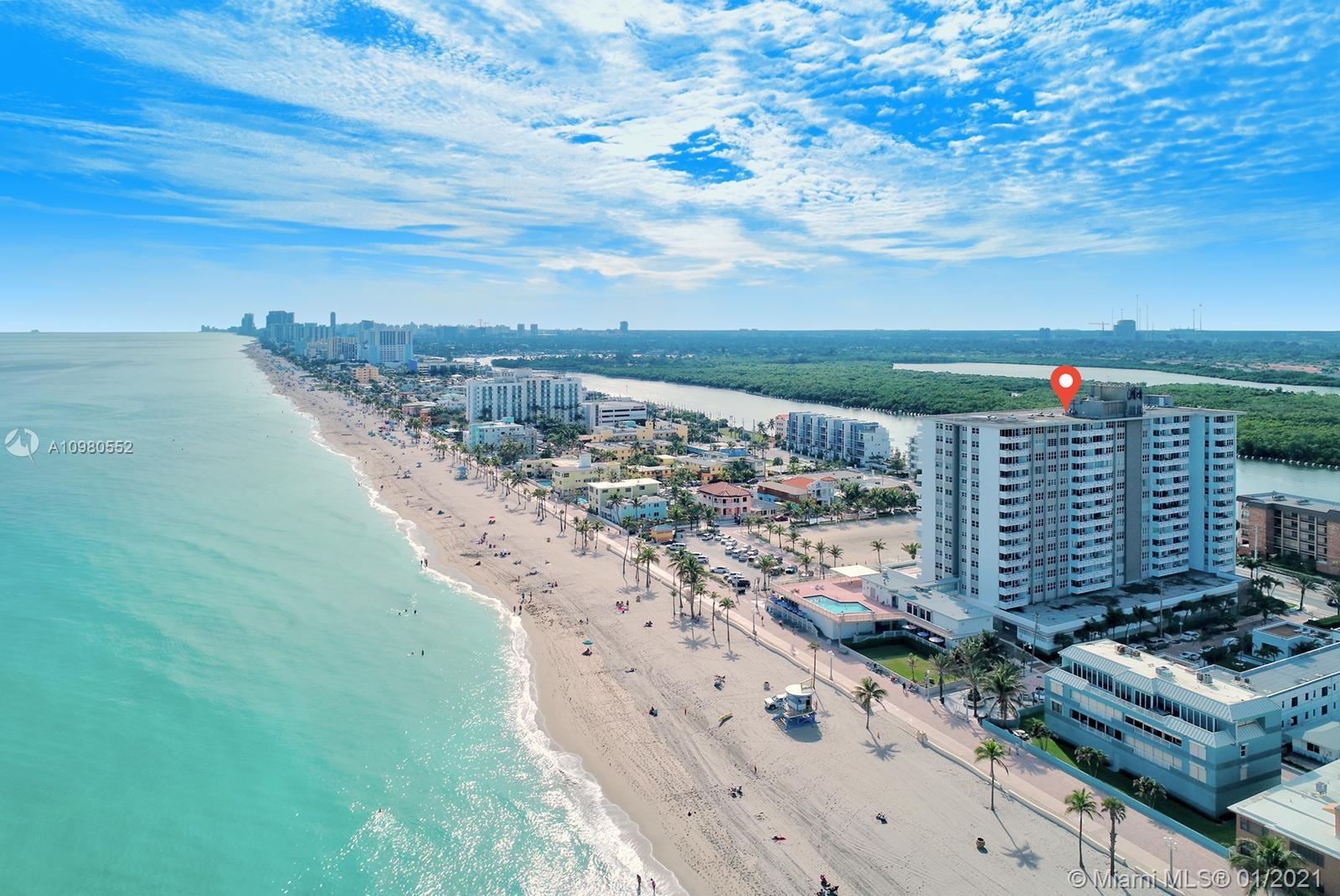 One of a kind apartment, completely renovated and located directly on the Hollywood Beach boardwalk. This spacious 2 beds and 2 baths unit has excellent ocean and intercostal views. The building, Hollywood Tower, features 5 stars Resort Amenities , 24 hour concierge, elevators, gym, heated swimming pool, library, bicycle room, billiard rooms and table tennis. If you are looking for the perfect home on the beach, you’ve found it!