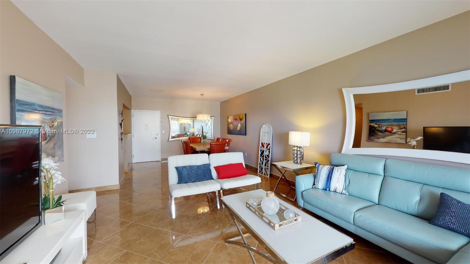 Great Direct Ocean and Intracoastal views from this beautiful 2/2 completely renovated. Enjoy the views from the comfort of your balcony, preview the Sun Rise and Sun set. Great 180 degrees views from every window. Tile floor thru out the apartment, new hurricane windows and sliding door, beautiful tiled bathrooms, nothing is spare in this turn key, moving condition property. Direct access to the beautiful sandy beaches of Hallandale! Building offer shuttle services to town and Aventura Mall, pools, tennis court, marina 2 great restaurants and much more.... As per Seller knowledge, the unit is 1350 sqft.